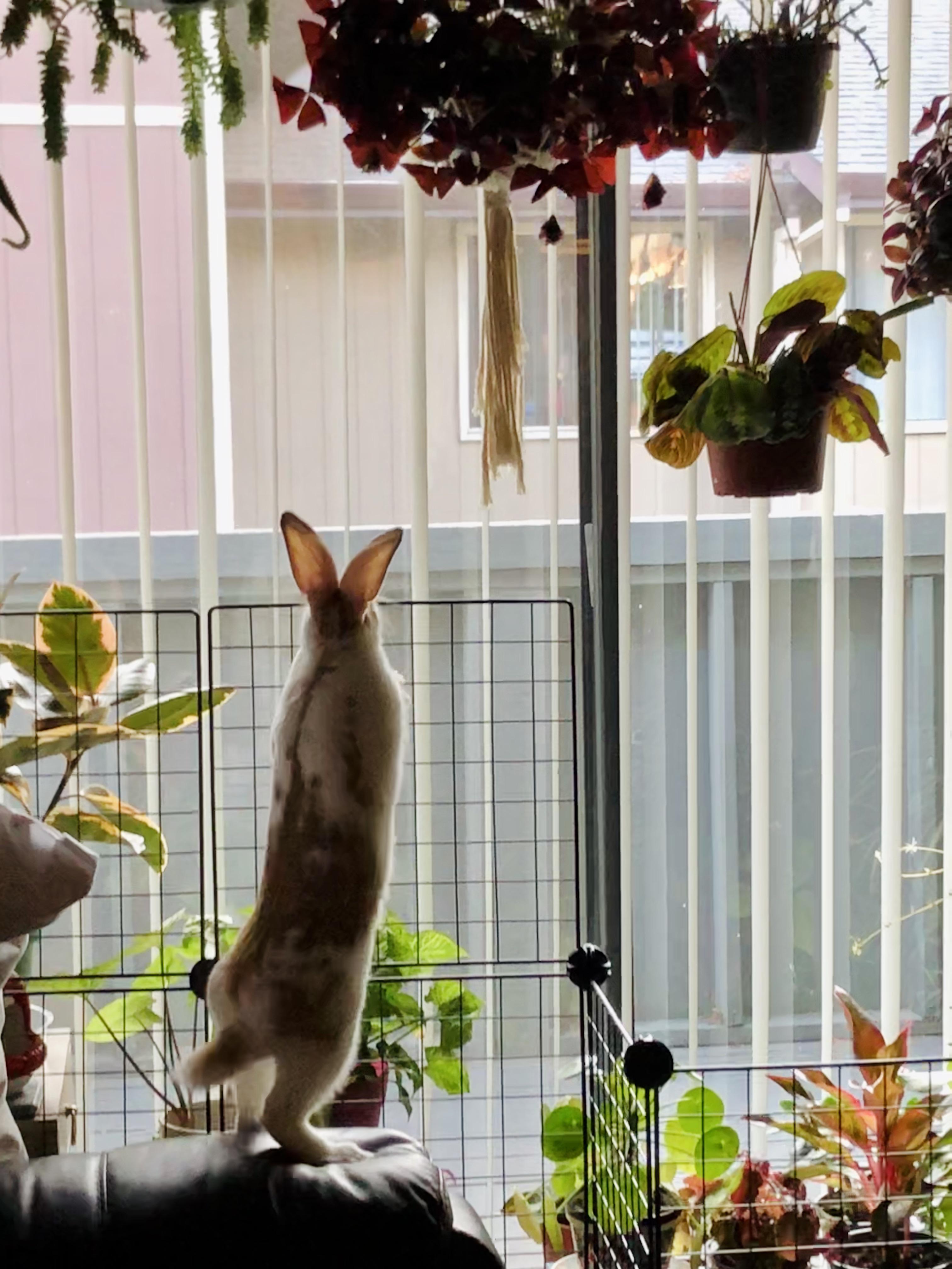 I have a drink cart that I’ve been using to keep some of my plants on, it has two shelves but I can no longer use the lower shelf because my bunny discovered she could jump up there. She didn’t eat anything thankfully but I was worried she might get hurt on my cactus so the plants had to find a new home. Edit: Also just wanted to say your money plants look lovely.