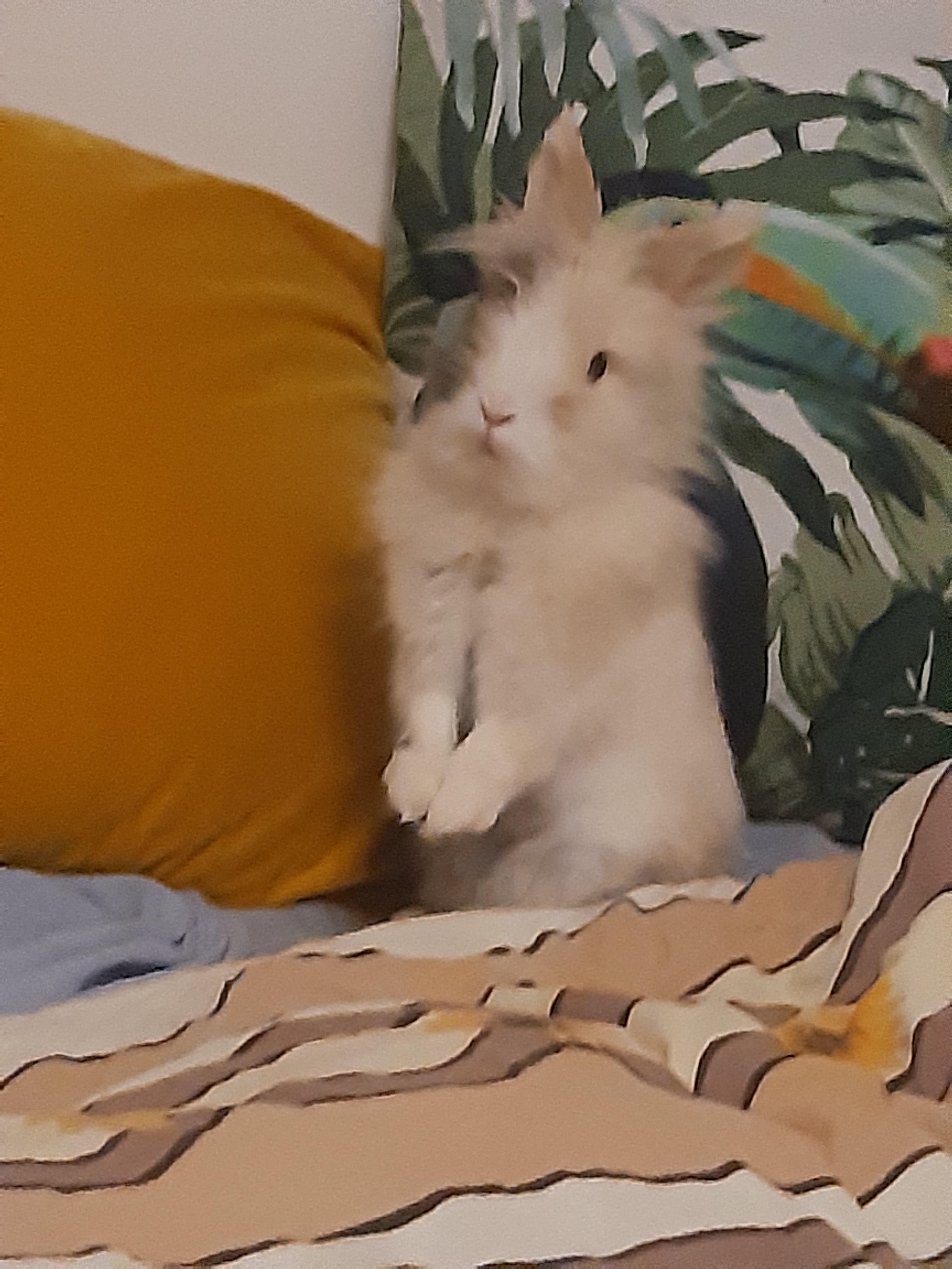 My bunny was digging into my pillow, I wanted to stop her from far so I snapped my fingers, this was her reaction.