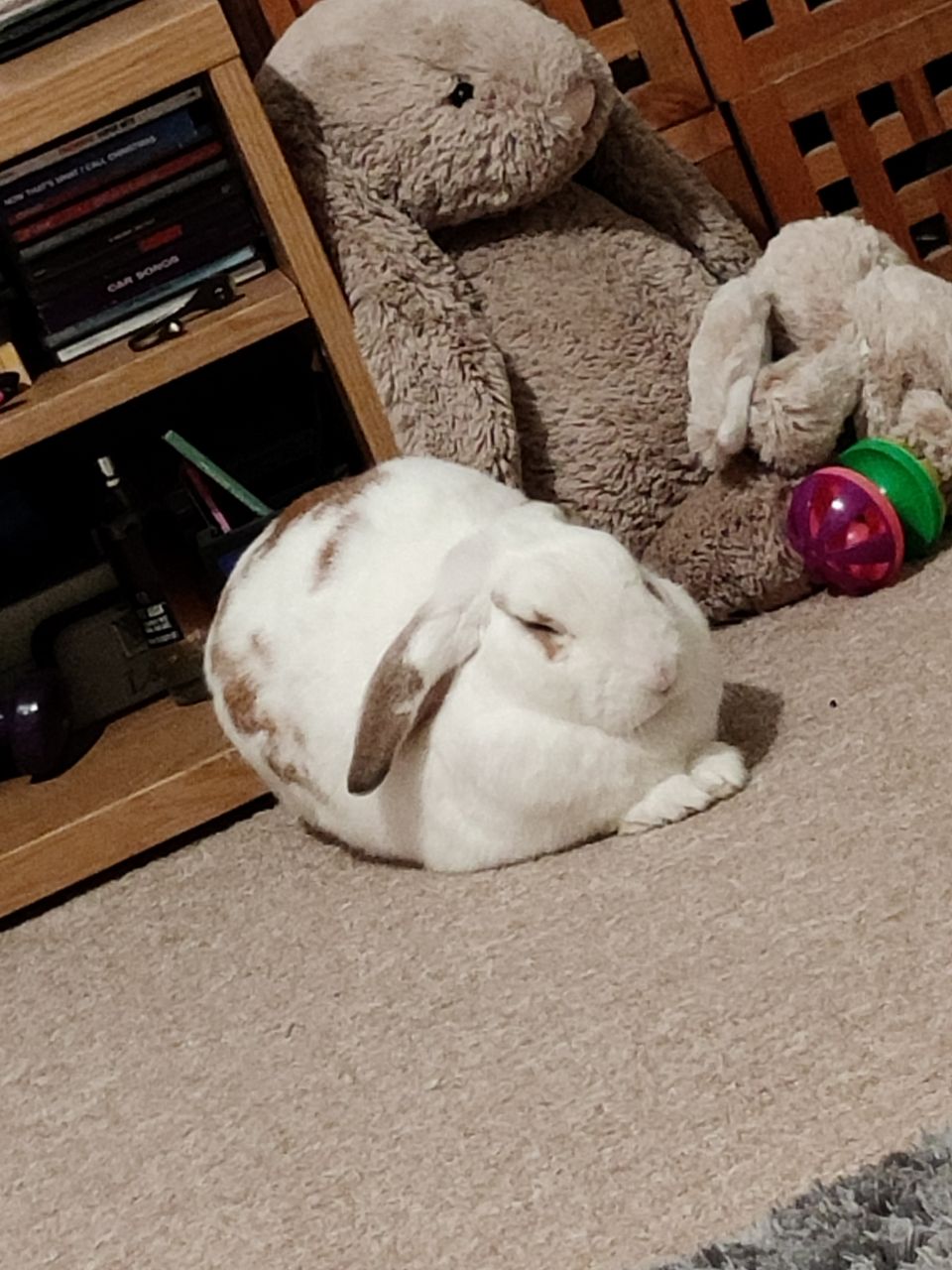 Cute rabbit! But can’t help but notice, what’s going on with the stuffed bears lol.