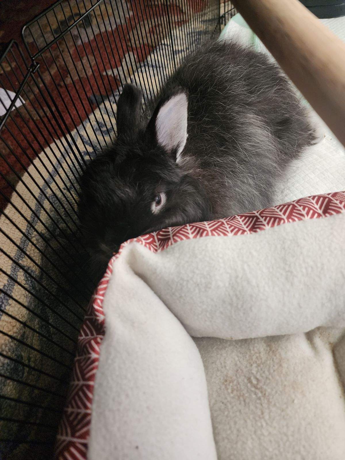 Peering over the little bed so defiantly. I love rabbits and how they can murder you with a stare.