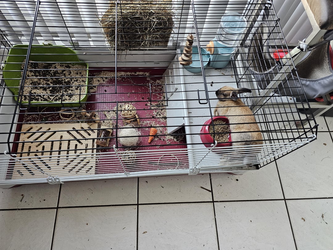 I’m sure bun would appreciate something soft underfoot and more room to hop. Those cages with ceilings restrict their movement a lot.