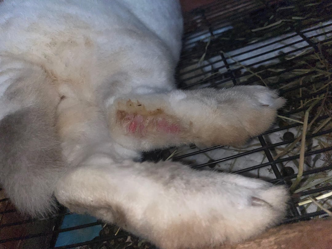He has always been prone to hock sores, only one of my bunnies has had a hock sore but after treatment it went away. For him, no matter what it always comes back worse. The vet gave me this spray so I use it on him when I see that the hock sores are getting bad. Today I noticed that almost his whole foot looks like a hock sore. I’m kinda freaking out because all my other bunnies have the same living conditions as him and he’s the one that winds up with hock sores. I’m planning on taking Ralf to the vet tomorrow. Anyone have advice?