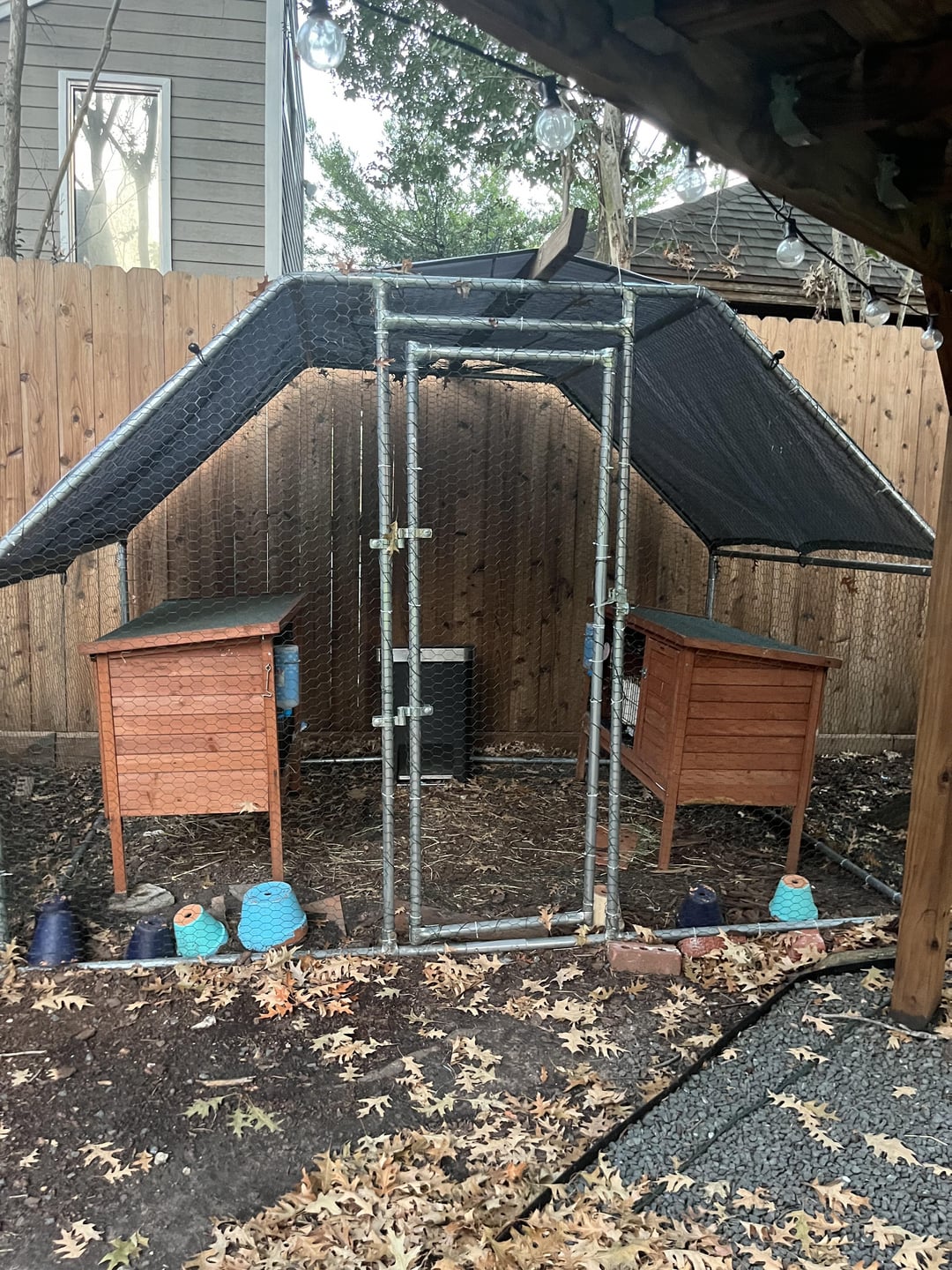 I’d recommend keeping your rabbit indoors. X-pen and area rug are easier and cheaper to maintain than two hutches.