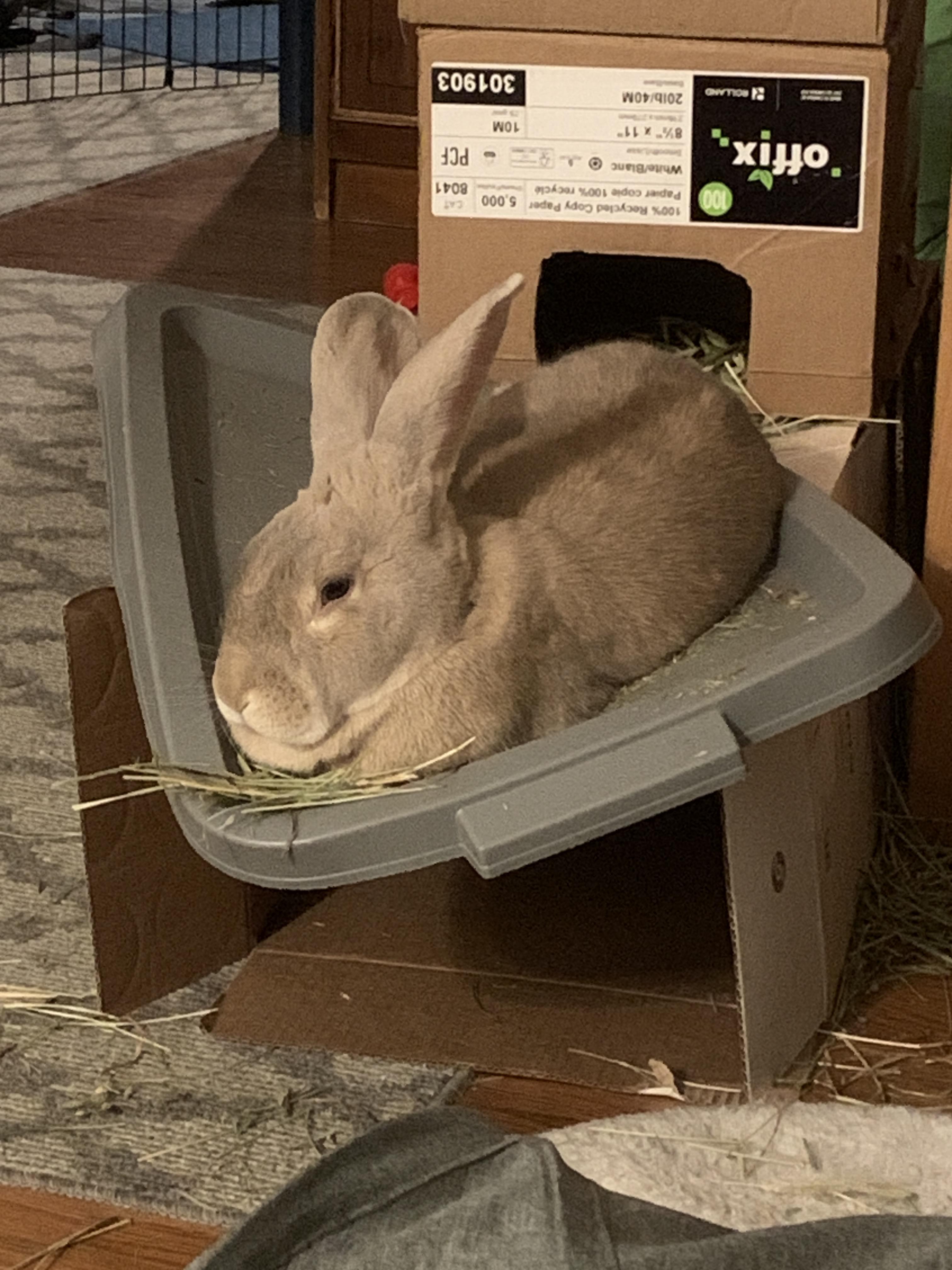 She might be permanently bending this bin lid, but I haven’t got the heart to move her.by Cheilosia buncomfortablebunny sleepingrabbit sleeping 2 Comments spongebobstyle 2 years ago That’s a hammock, actually fluffypinkkitties 2 years ago If she fits she sits!Write A CommentYou must be logged in to post a comment.