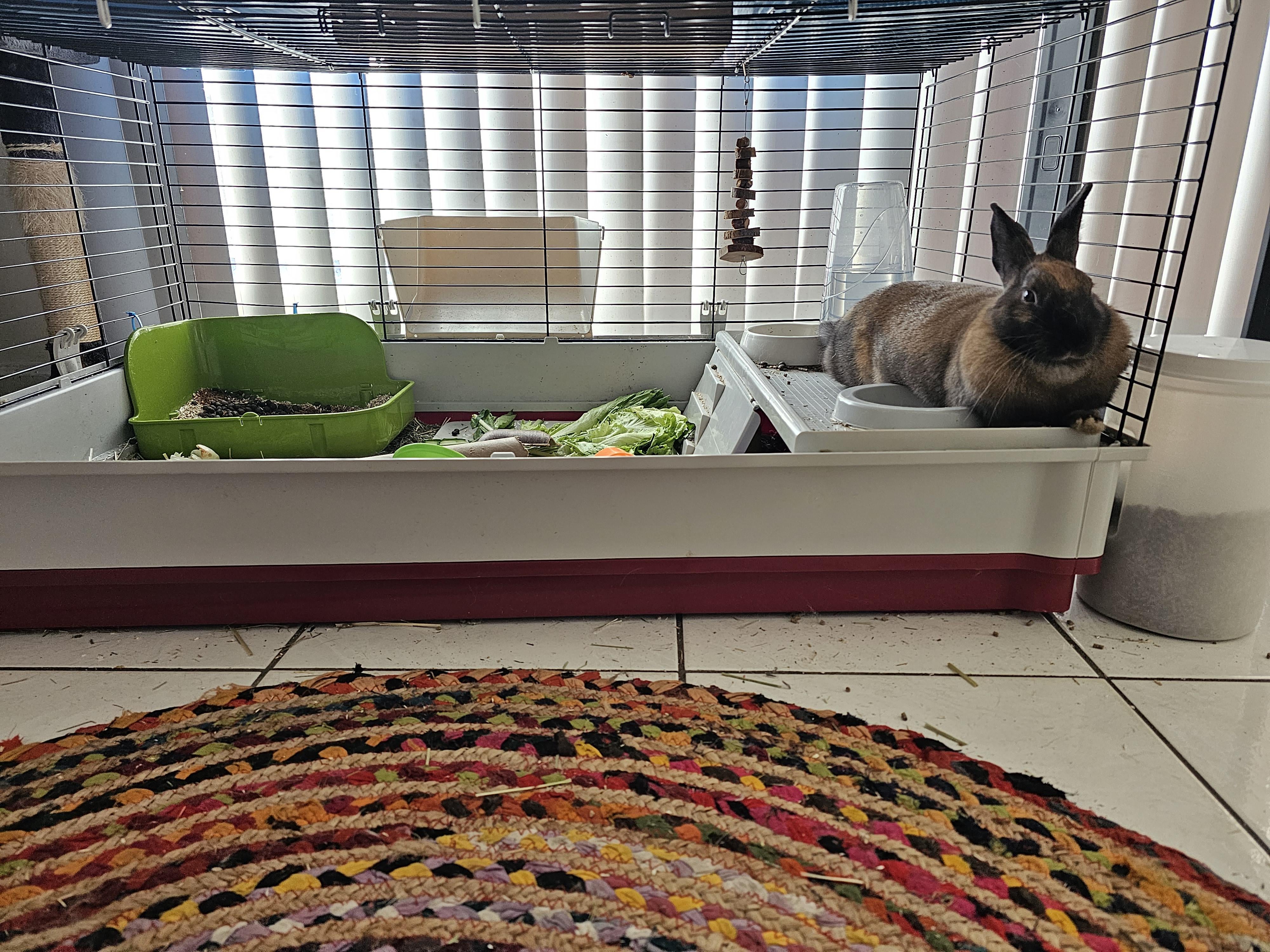 Cute! We had an open hutch like that, and the buns just liked being inside it. I think it’s the sense of enclosure like a warren.