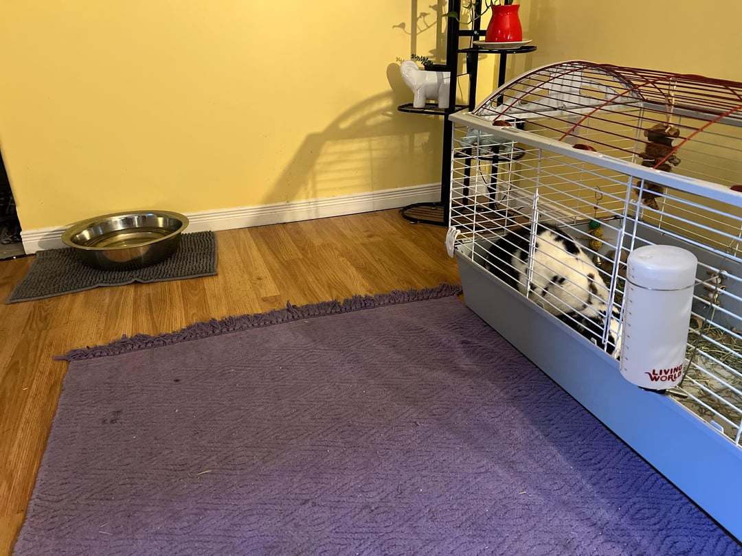 This little miss just tried to pee outside her litter box, don’t let her deceive you, she’s been litter trained, the first picture is the distance between her house and the water mat, after a sufficient amount of time(roughly ten minutes) she has been released from her timeout and allowed to free roam again, she has been asked to not try to pee outside her litter again, shame her.