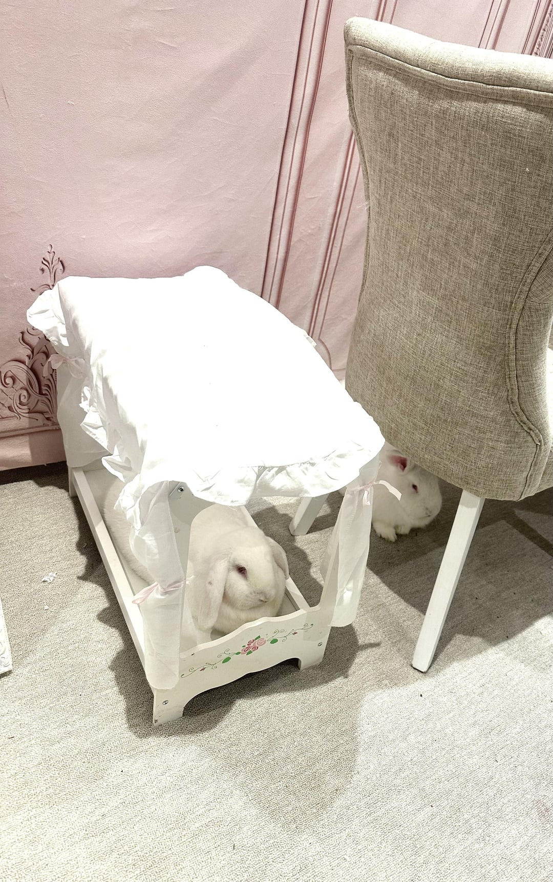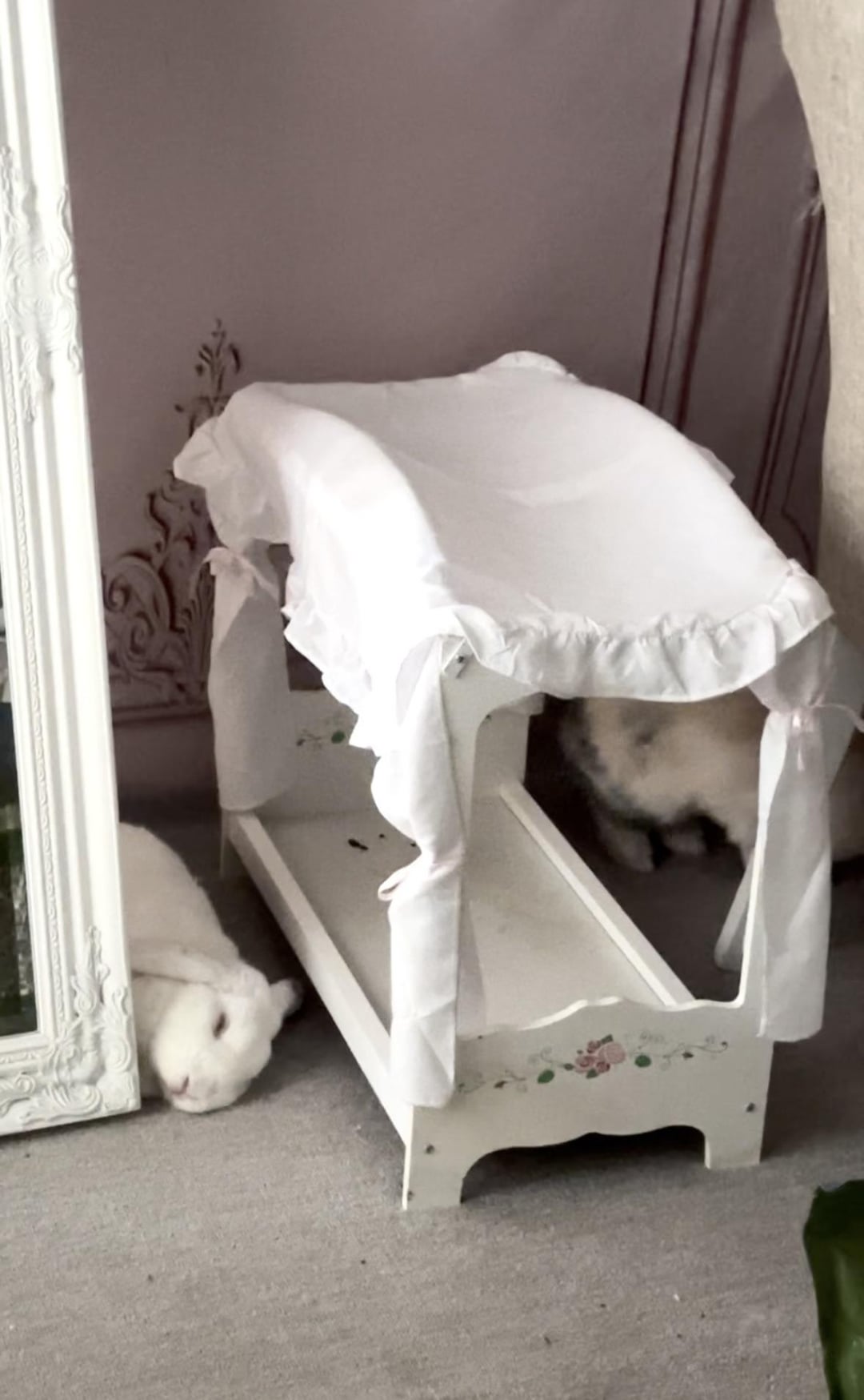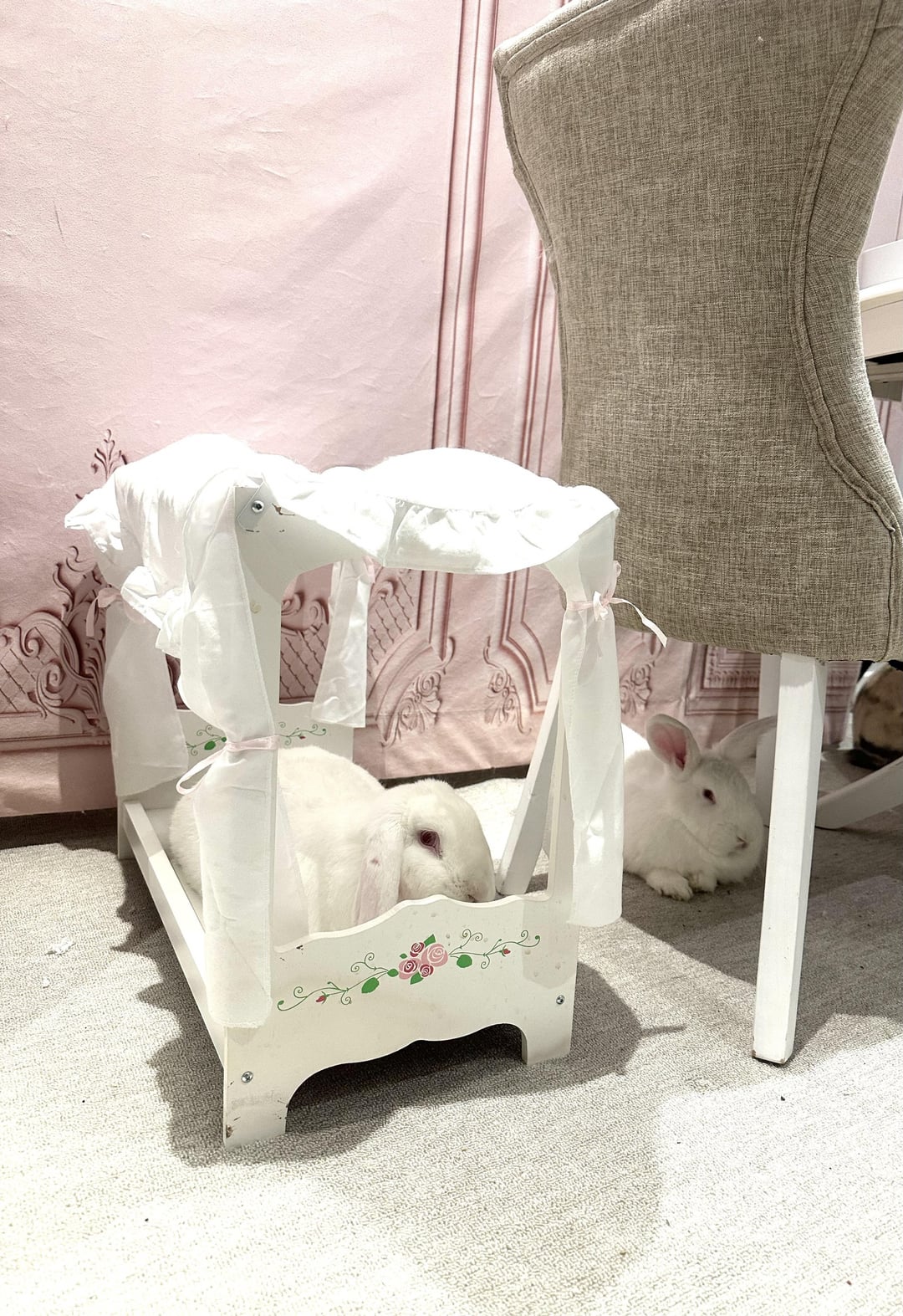 Since they are small cloud bunnies, the softness of the bed would be too soft for their cloudy bodies. Therefore they lay one the floor, evening out the two extremes of hard and soft and reaching the perfect balance in between.