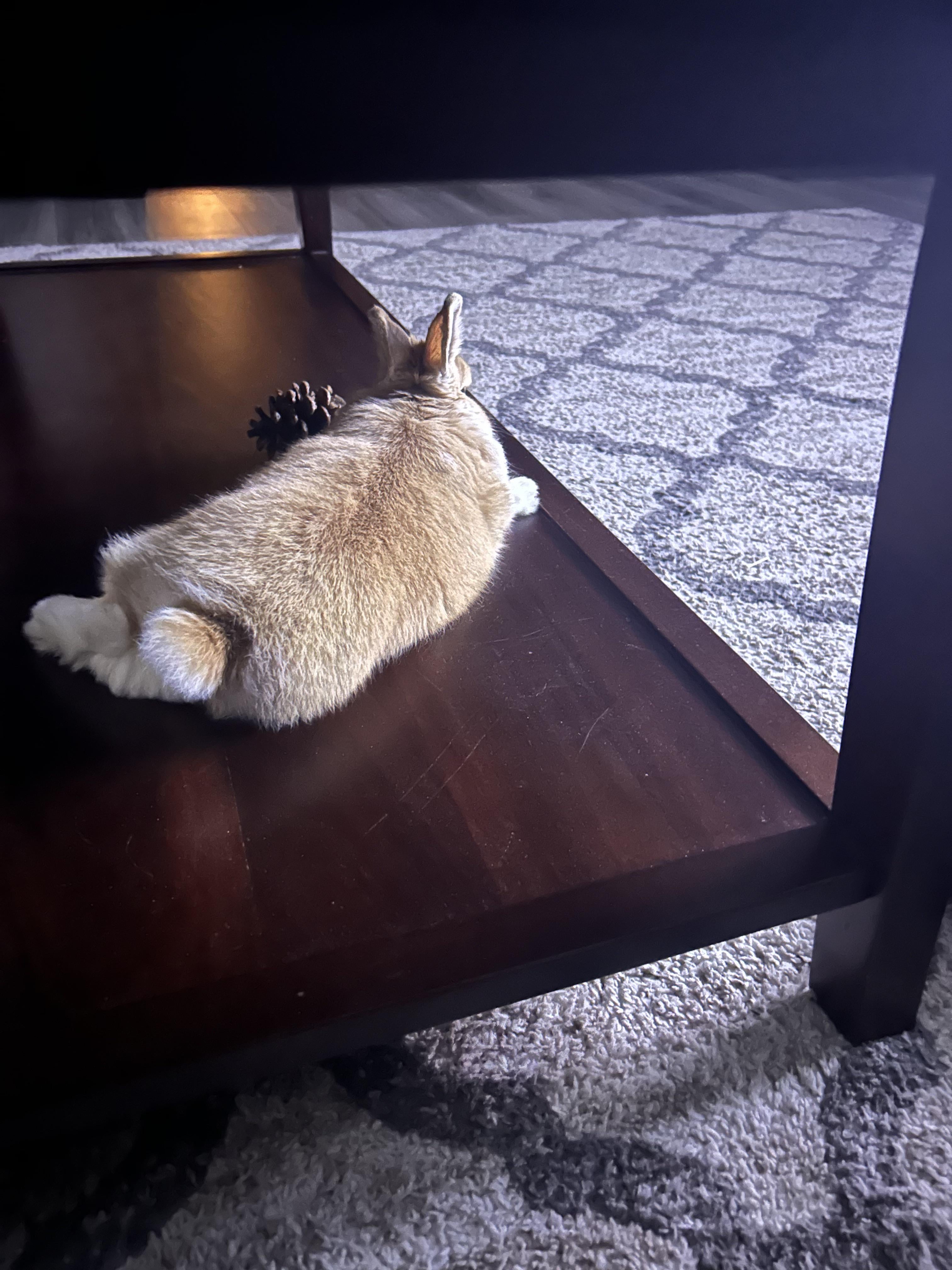 He’s got beds and blankets but why bother when you have a coffee table to lay under all day?