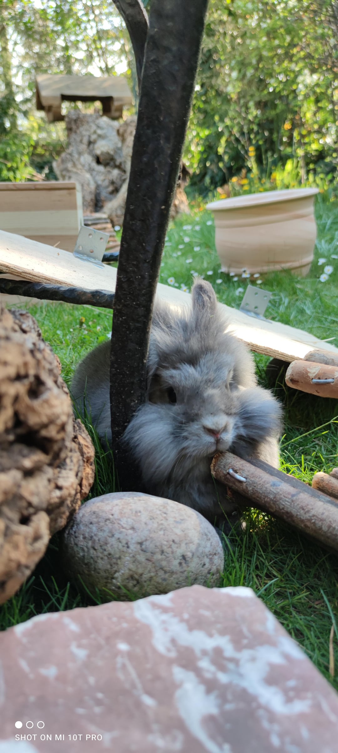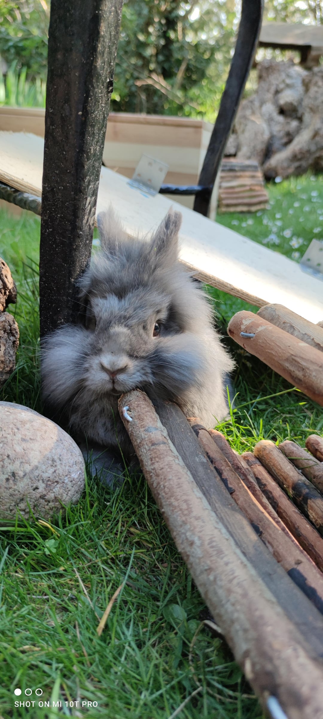 We were building new furniture for them and cleaning out our garden so he had to be in the middle of it all