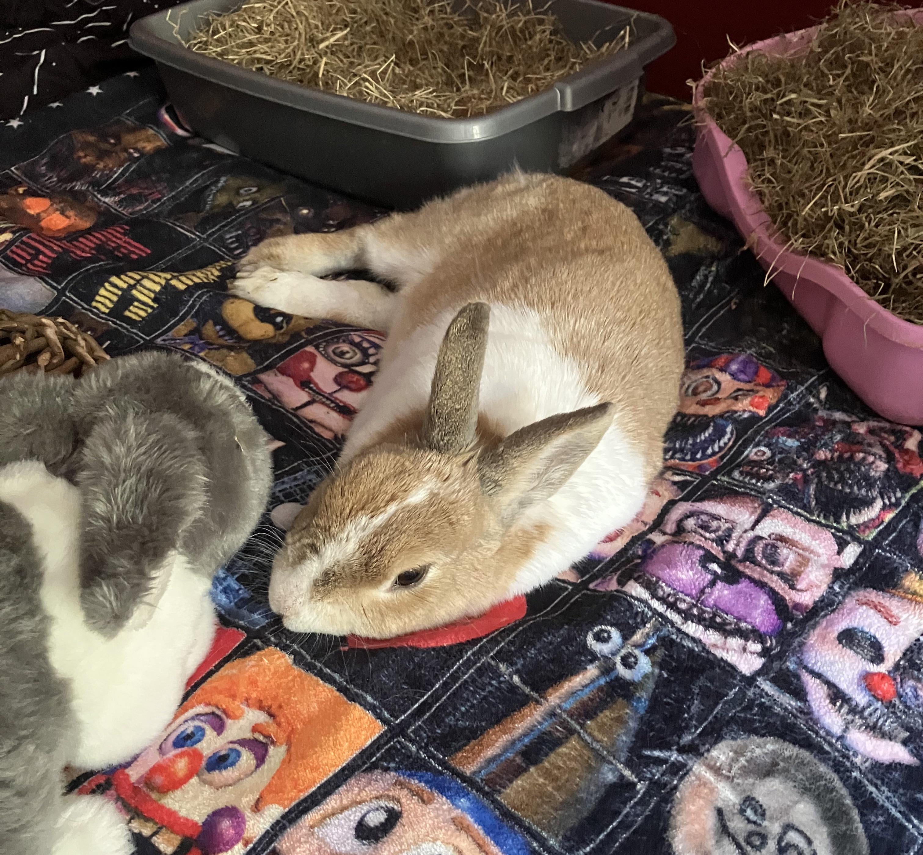 the image is of her sleeping on my bed so i know she’s comfortable enough with me around to do that. most days when i have her with me im just sat on my bed next to her. she never comes over to me though, just sits on her side of the bed and sleeps or washes or eats her hay