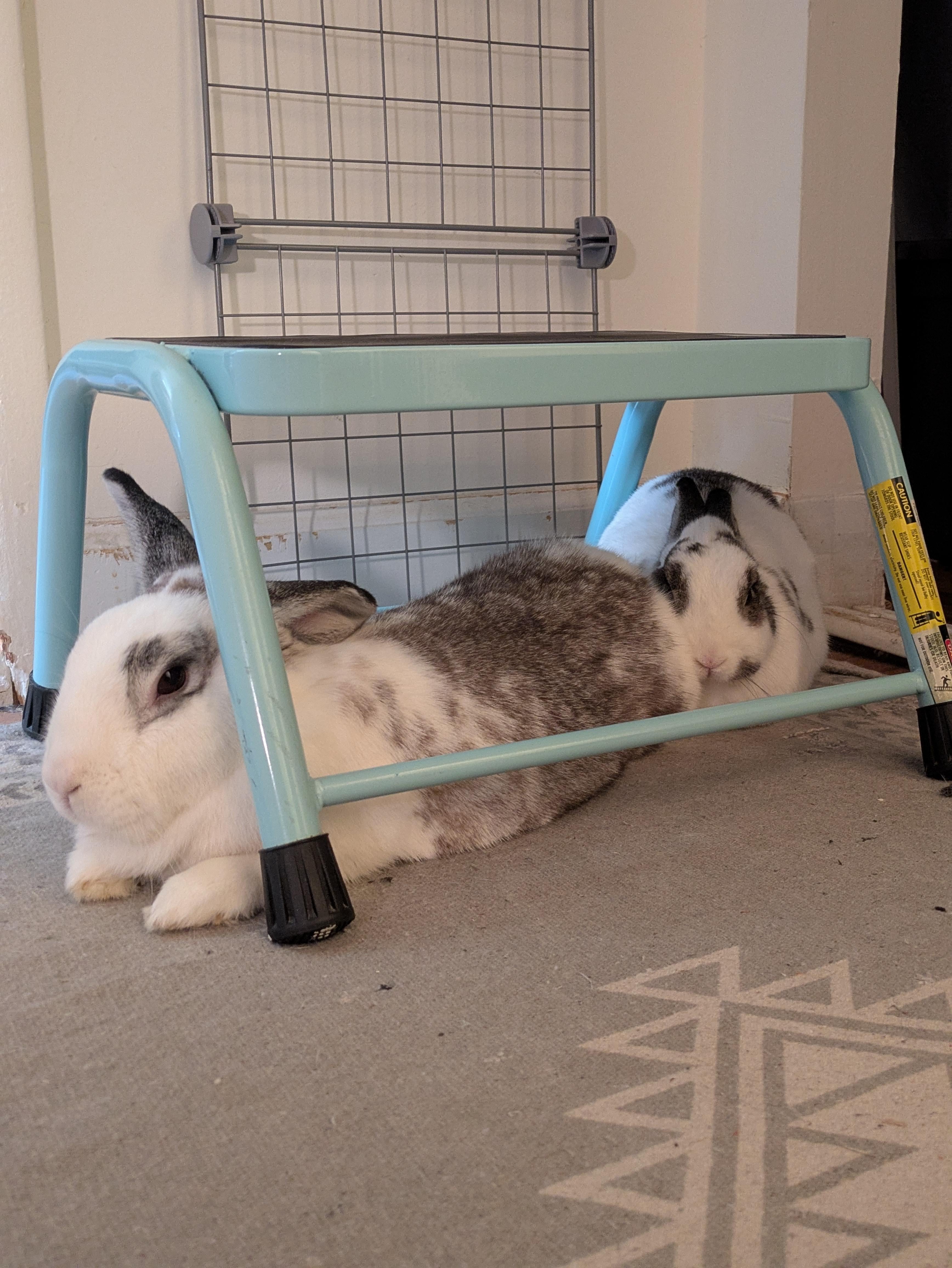 sleepy_peep 9 months ago I buy tons of hutches, hideouts, and blankies and one of my buns insisted on cuddling with the surge protector. I started covering for safety and he was FURious