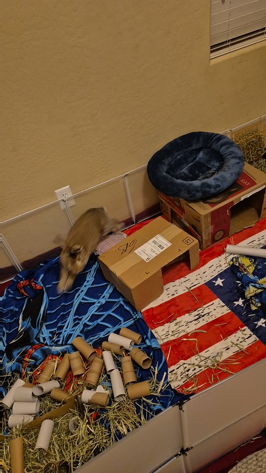I'm looking for a home that can provide at least 20 square feet of space, lots of free roam time, plenty of enrichment, and regular fresh veggies in his main diet. Besides this, he needs a neuter, I got the vaccines covered.