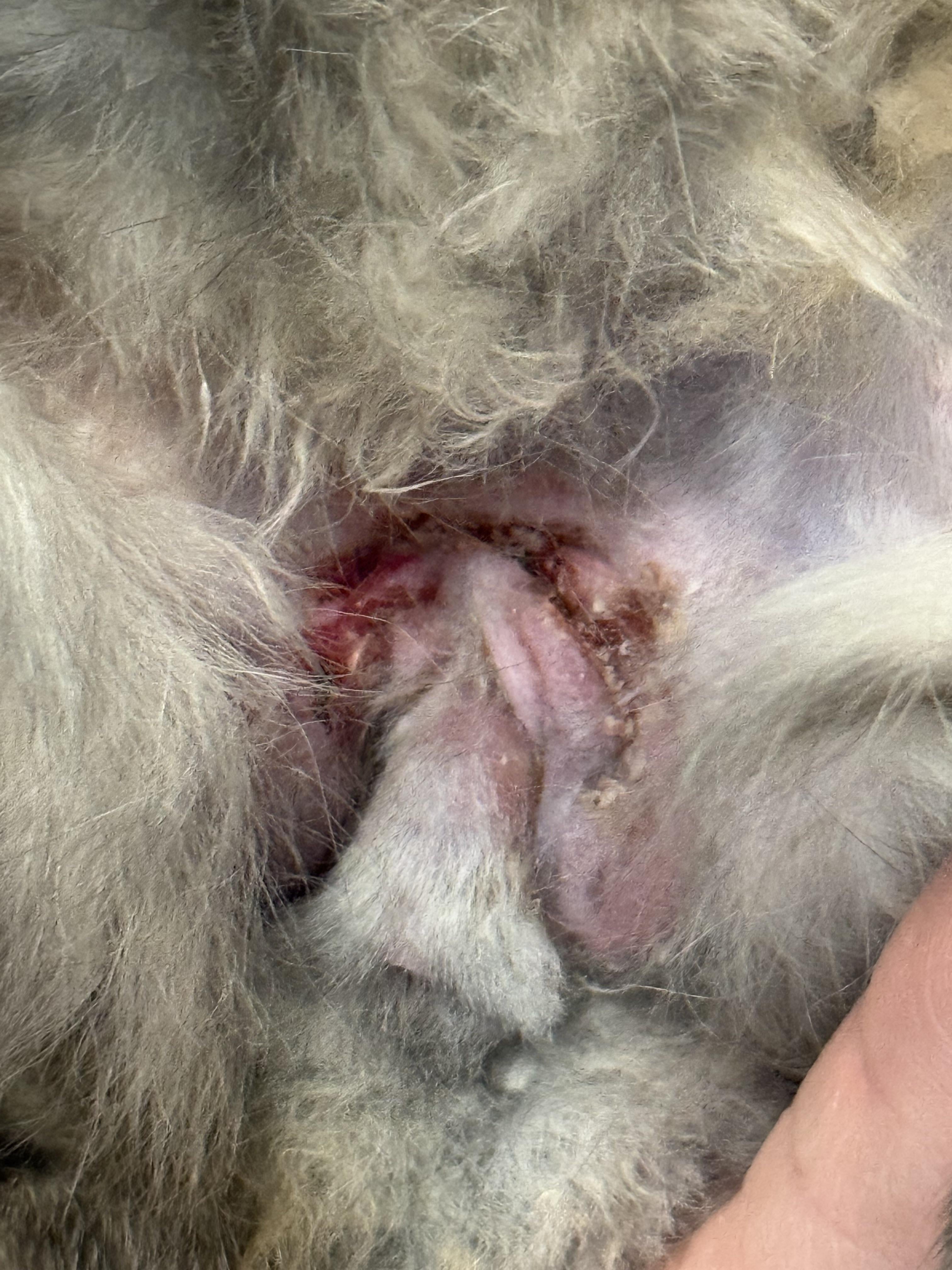 Bunny went through a neutering yesterday, came home in a cone as the vet told us he was messing with his wounds. At home we found one of his paws in the cone so we took it off, which bunny loved. But once we tried to put it back on him he panicked, ran into enclosures, kicked around and even flipped on his back! We kept the cone off and sat with him most of the night (up till around 4am) and using our hands to stop him whenever he bent down to lick or chew the wounds! We also had to keep an eye to see if he was just eating his cecotrobes. Of course there were a few times here we didn’t catch him in time. This morning his wound looks like this. Is this healing ok? Called vet, emailed photos and waiting for response. Is there anything I can put on there to help it heal so he won’t mess with it?