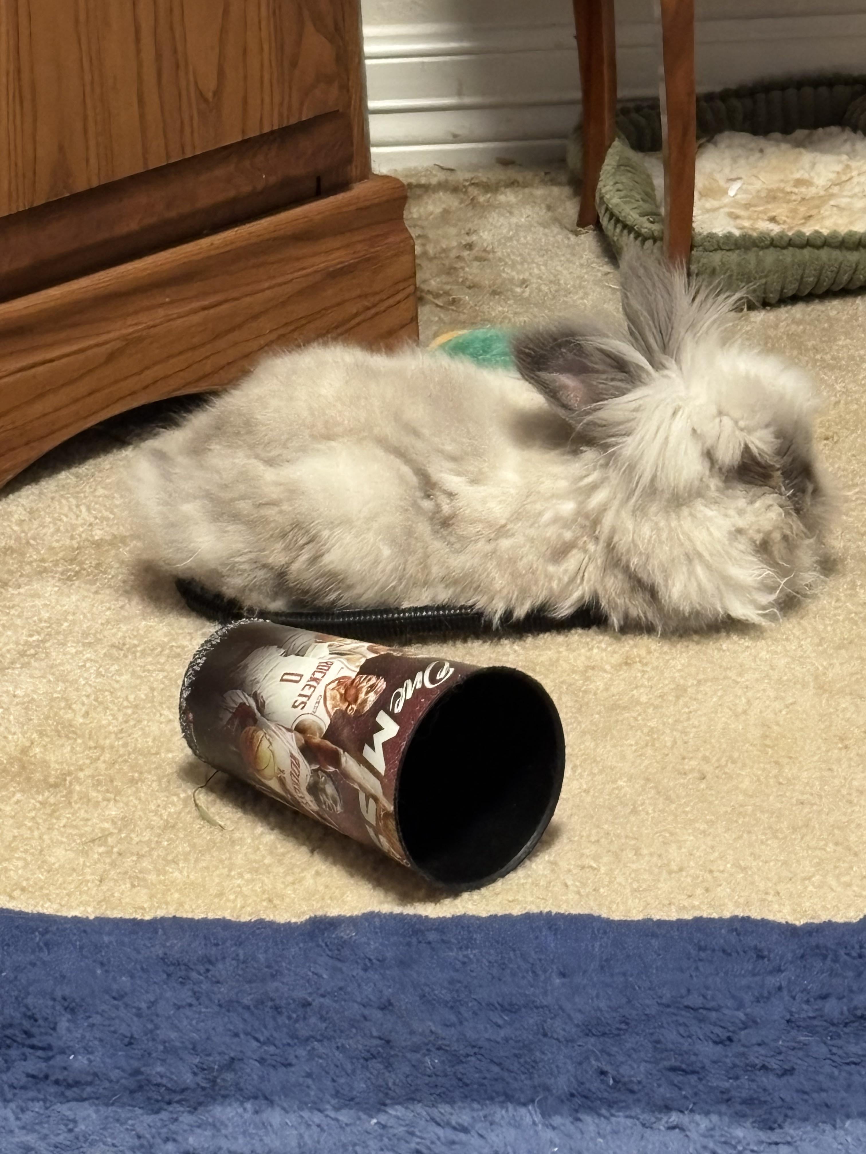 A follow-up to my last post since you can only have one pic per post: here he is chilling in the circle. It’s like if you put a circle down on the floor, a cat *will* sit in it. Except he’s not a cat. He’s a bunny. A very strange bunny. I love him so much.