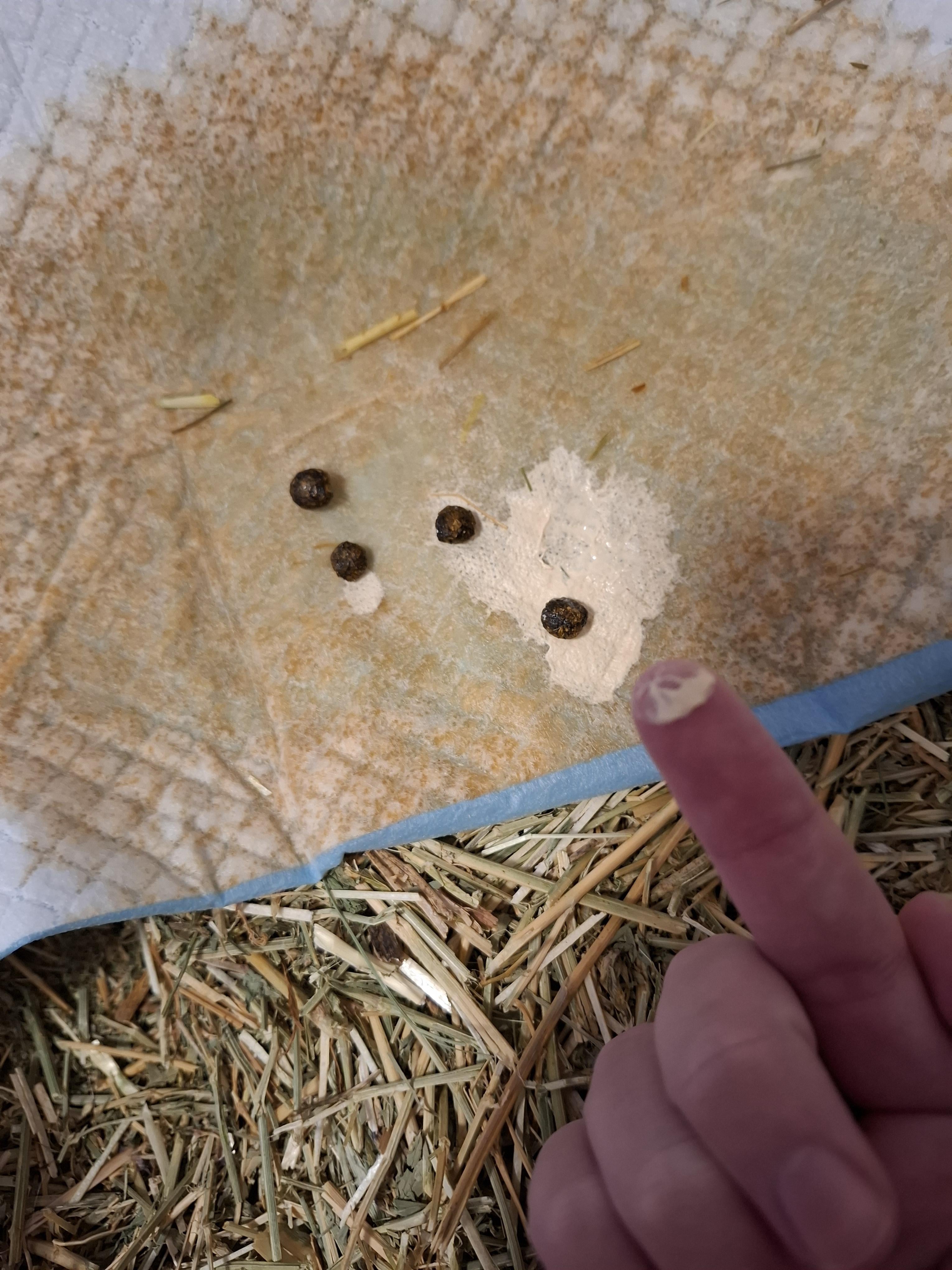 hey all, woke up this morning to some light bladder sludge. as you can see, it looks like a fair liquid foundation in colour, consistency and thickness. i'm cutting out high-calcium foods temporarily until my boy can process them again, and have picked some dandelion leaves as they have anti-nausea properties, but what other care should i be undertaking while we wait for our vet to come back? should i be syringe feeding him water if he doesn't drink himself?