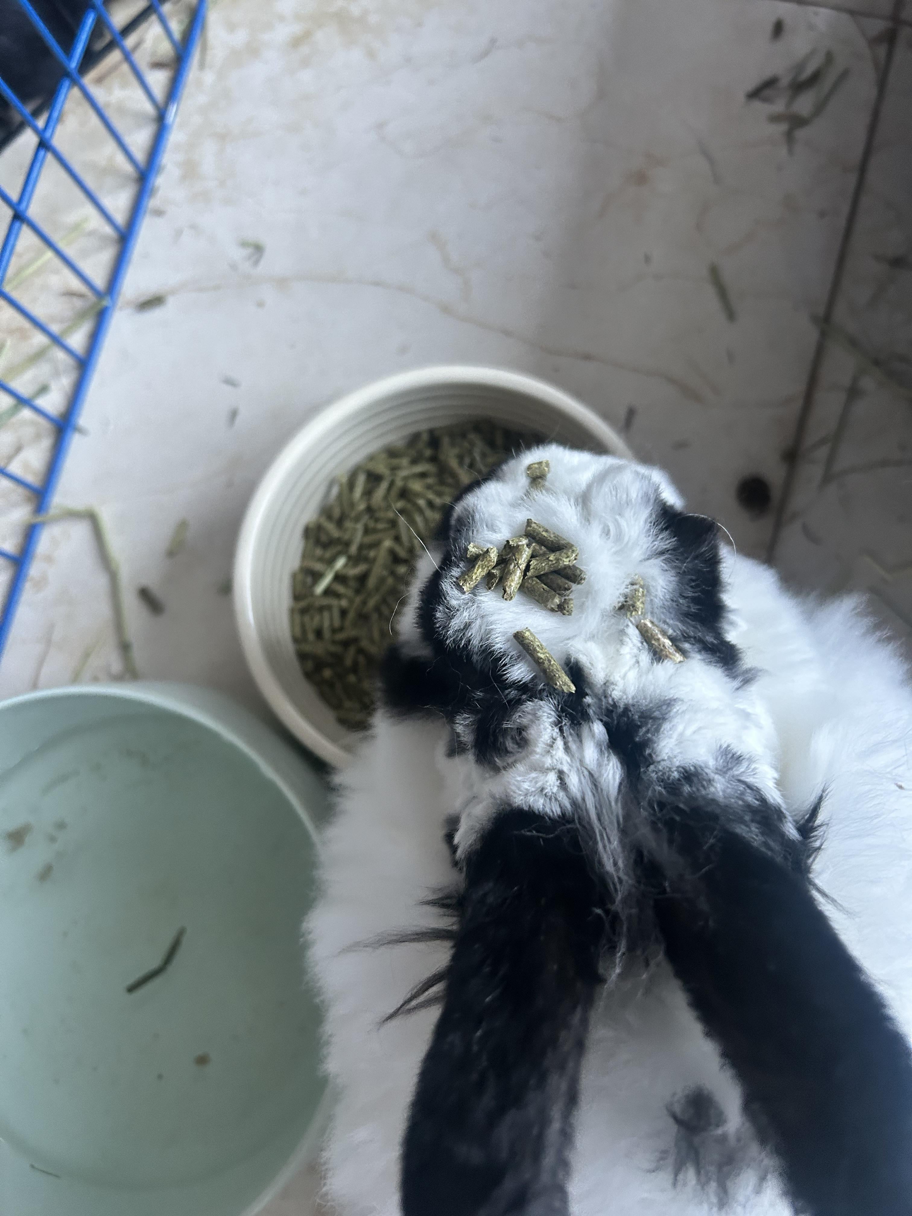 2. Got pellets on my head cos I’m a pellet head. (Sorry that’s from an old show, kinda) my girl flipped her bowl and got pellets on her own head and I sung that to her and now it’s just all I hear when I see this. Your bun is just very dedicated to his breakfast.