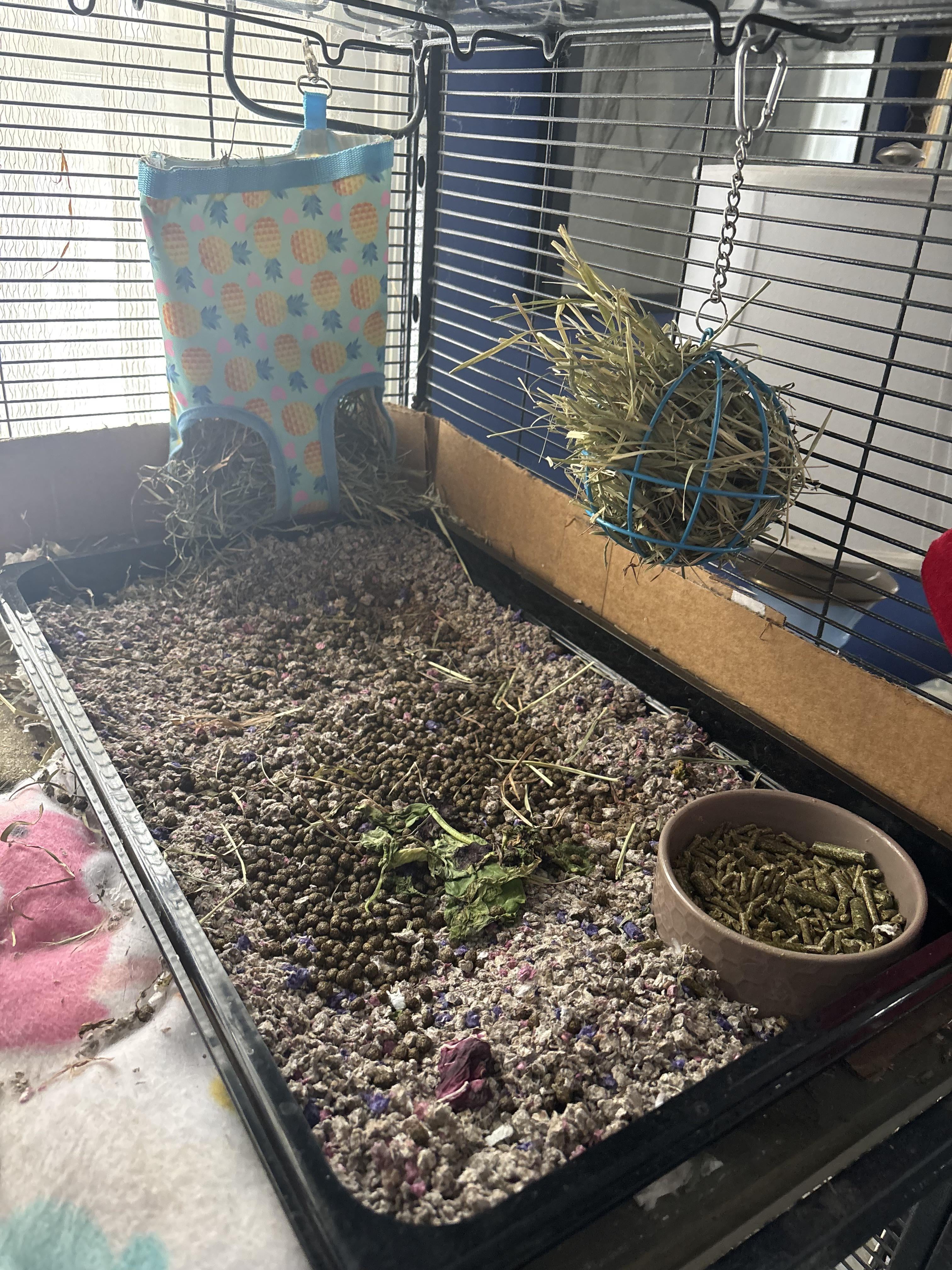 Disclaimer: I tried to post this on r/rabbits but the post was removed – I’m assuming due to their anti cage policy. I converted a ferret cage into a four level bun-safe ‘rabbitat’. Pippin loves being up high. He has a whole 2×4 level at human eye level and a ‘penthouse’ where he looks down on us all. The water bowl is on the first level. He has access to a 6×12 ft space all day and access to the kitchen, porch and living-room when supervised.