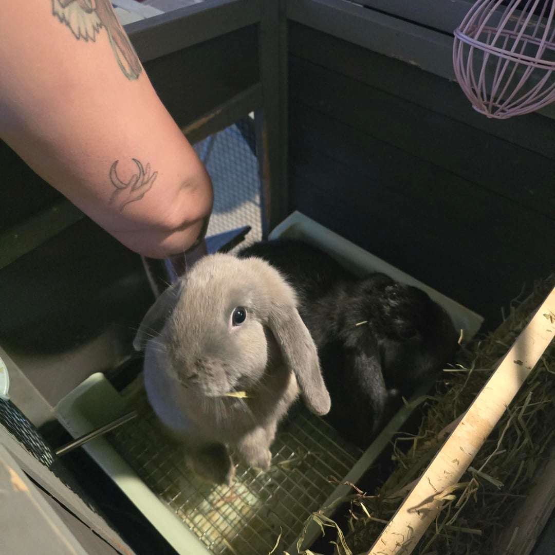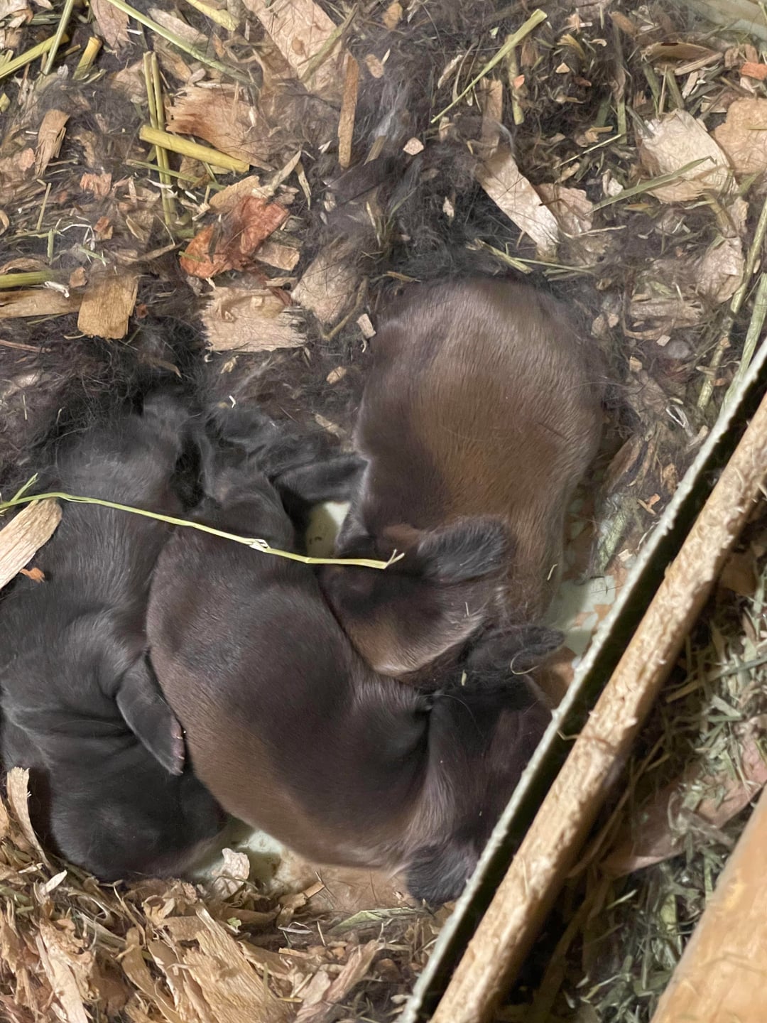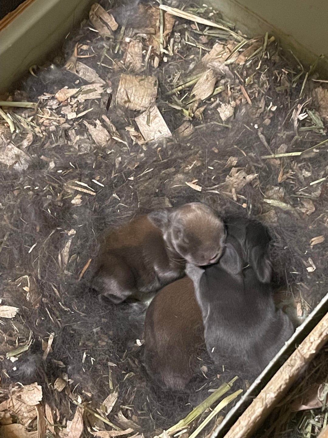 Mom is black phenotype and Dad is Lilac phenotype I know nothing about them other than they are almost 1 and are from different litters-not siblings. Someone on Facebook rehomed them to me 5 weeks ago I thought they were both female until bunny beans were in the cage one morning. The adults are separate now and I will be getting them sterilized.