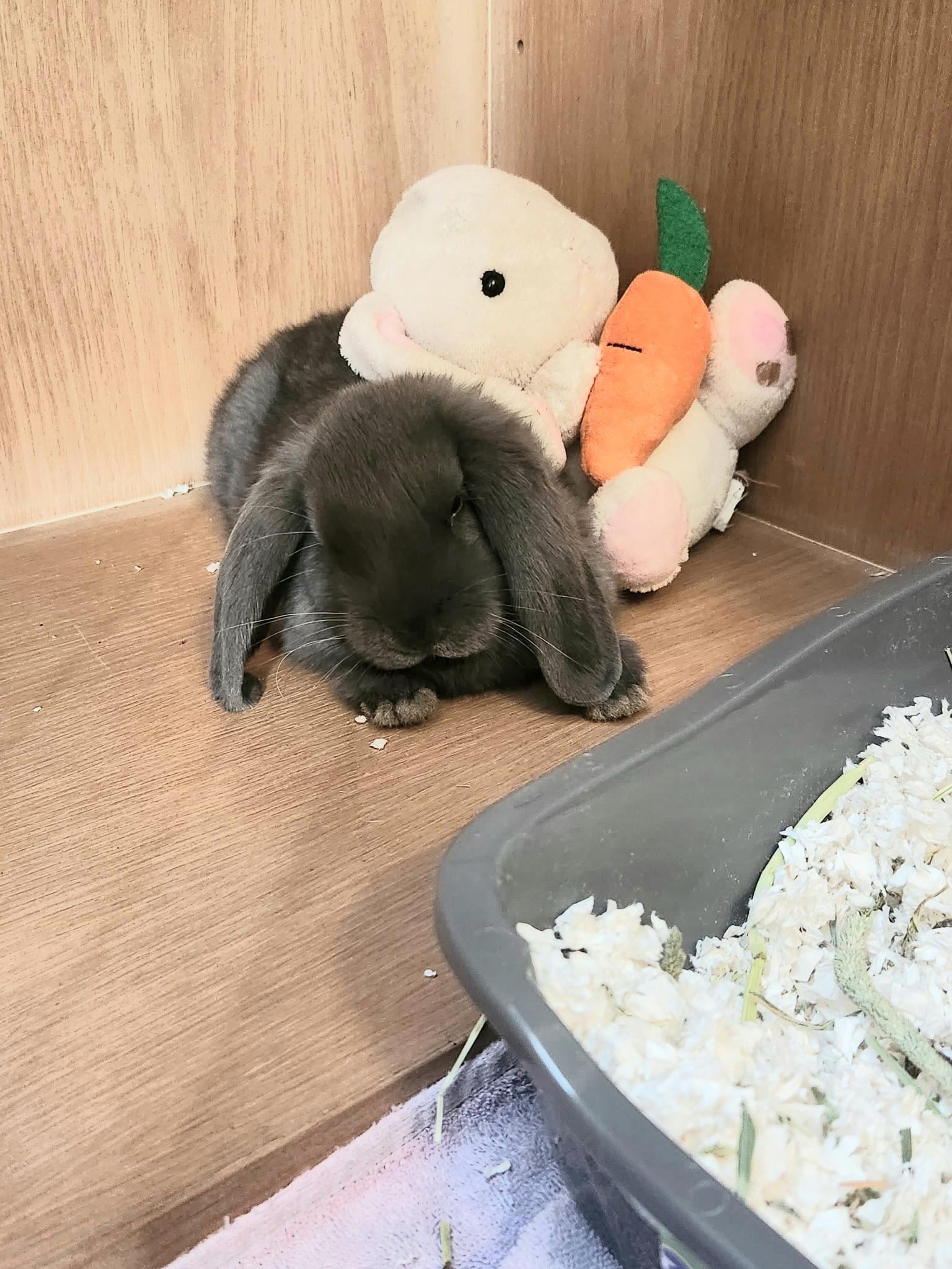 Introducing House, our new 7 week old half Holland Lop, half Flemish Giant. He’s so sweet and I’m in love. (He has a carpeted area, he just nestled into this cabinet at the moment).