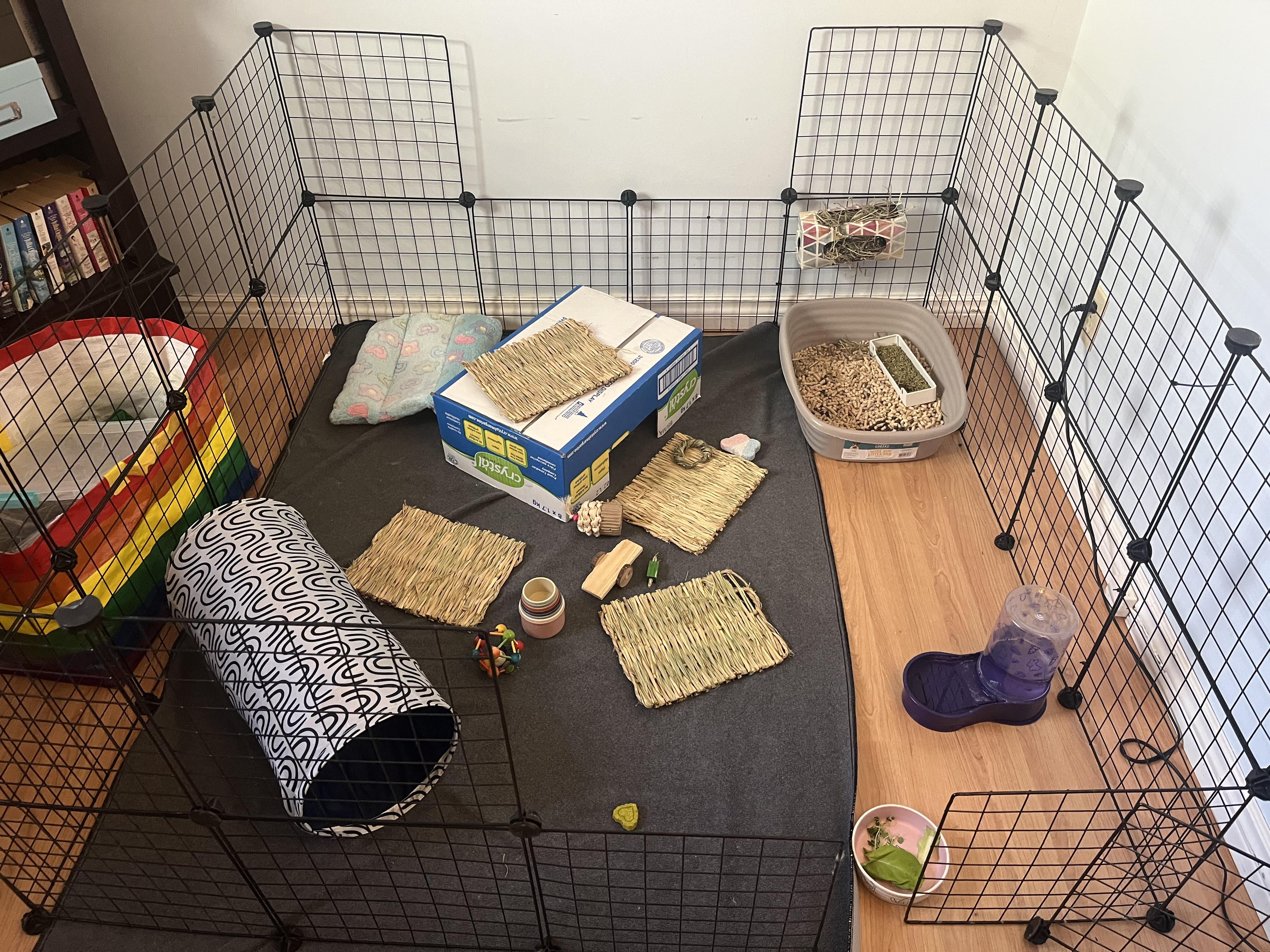 We are bunny sitting for the Christmas holidays. He is the best boi and we adore him! He is free roam during the day but I want to make sure his pen is safe and appropriate as he spends the nights in there.