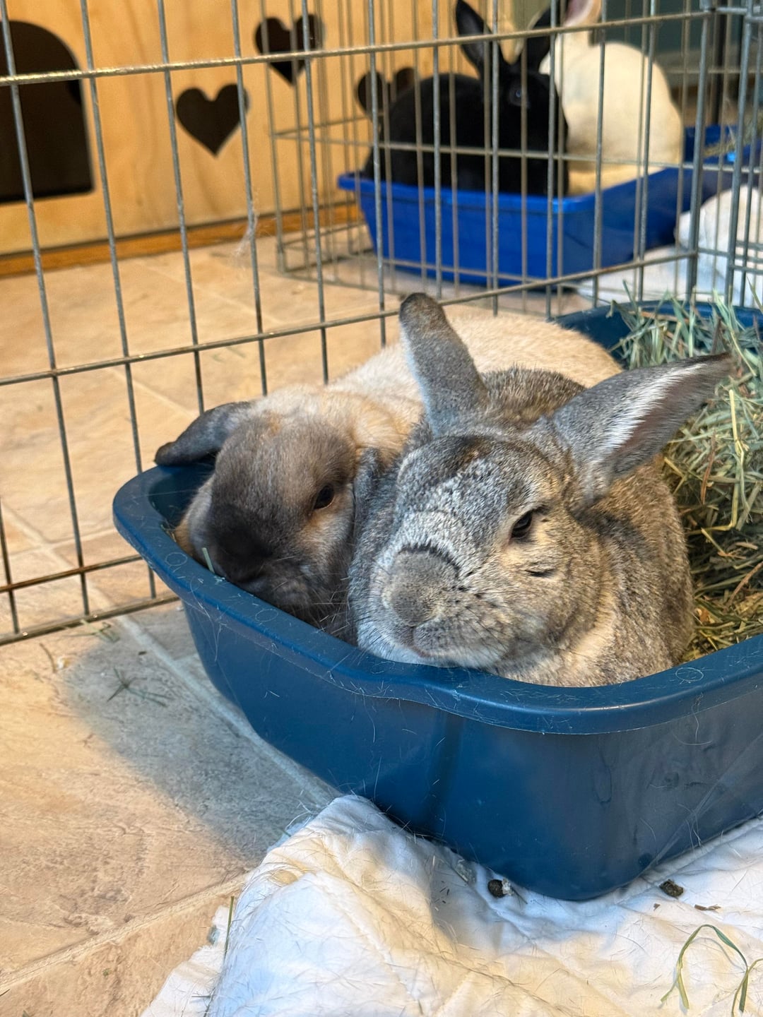 Took my bunny (the sable point one) to bunny speed dating at a nearby rescue today! He’s now on his bunnymoon with Presley (the gray one). Presley has no teeth due to a dental issue he had. He doesn’t need meds for it or anything. We just need to chop up his veggies & give him 3rd cut hay. So we already know the basics! The rescue gave us the run down to ensure we were comfortable caring for him.💛