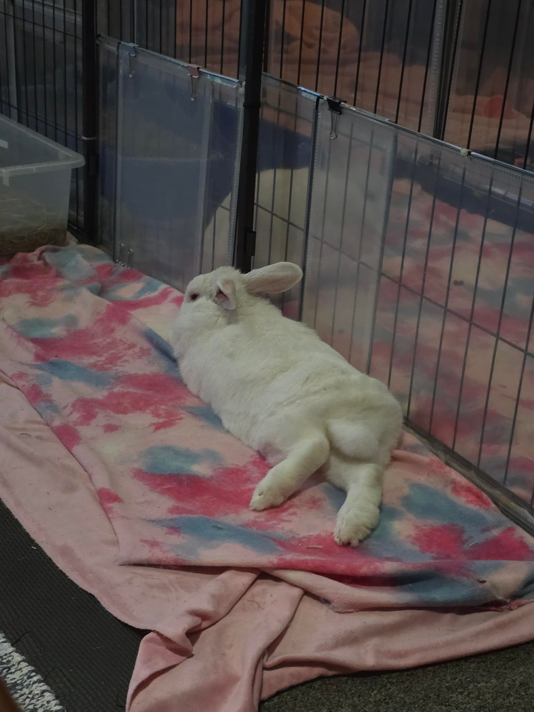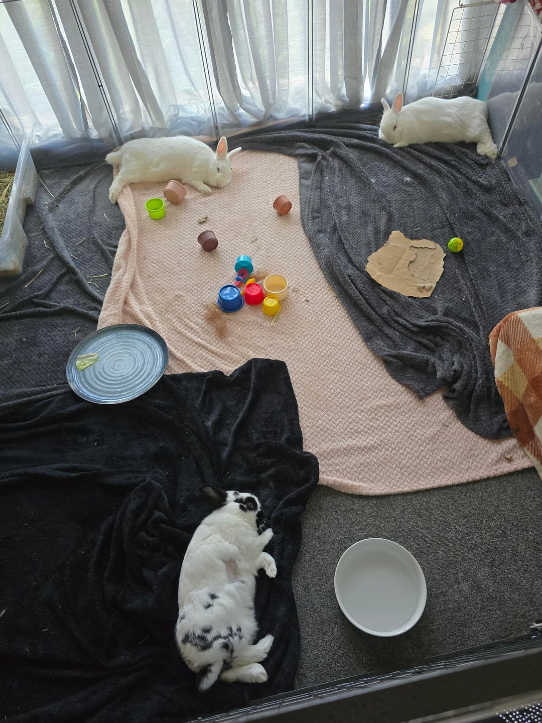 My buns relaxing while the air con is running on a hot today. They got their little fluffy feet out on display! π