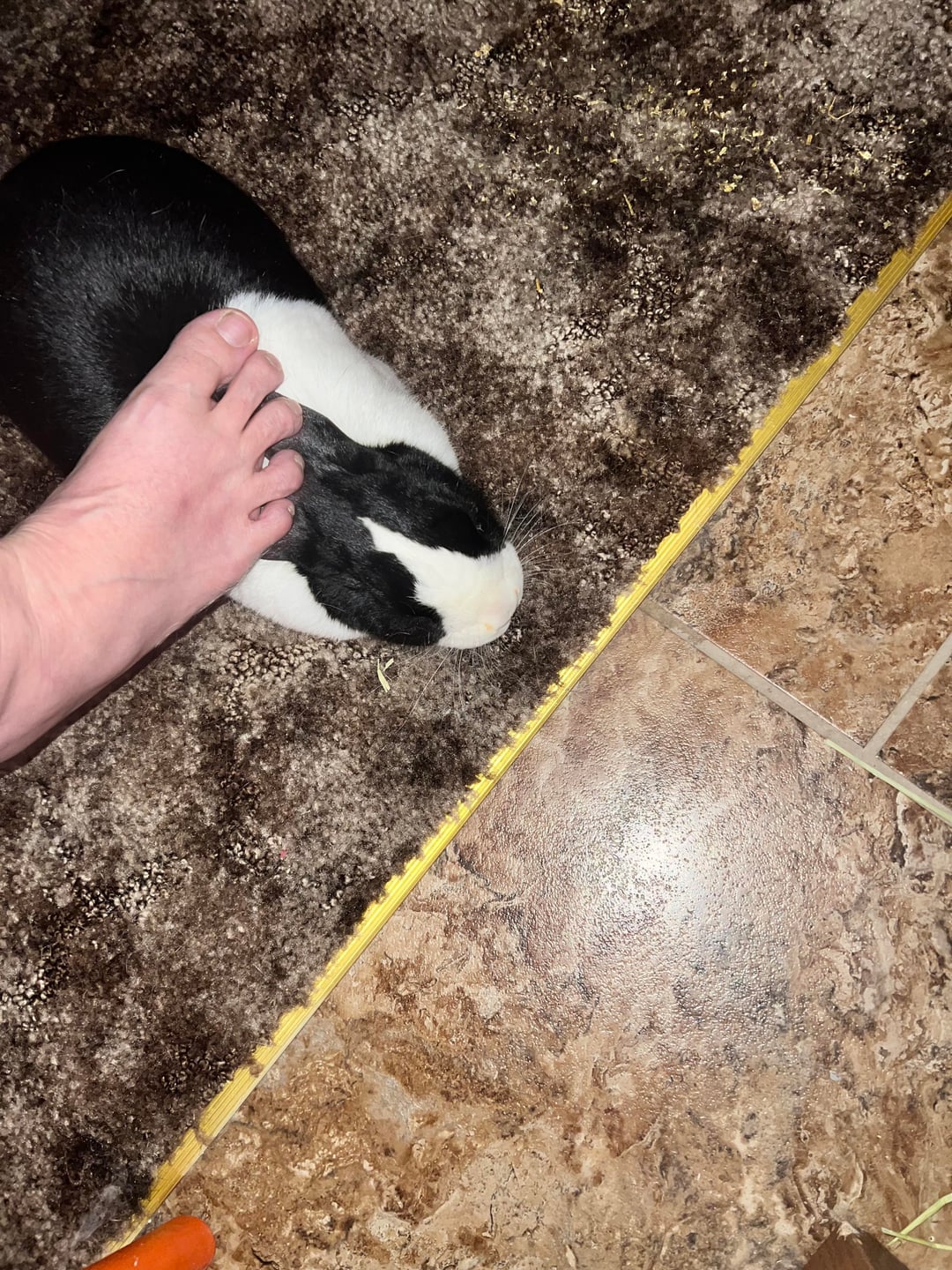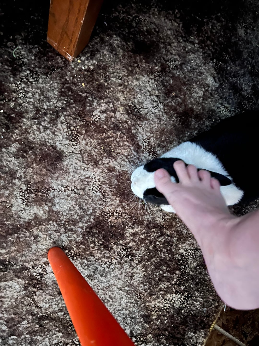 She really likes to follow my feet around and sit beside them. And she always wants me to rub her ears with my toes. She's a spoiled babbit