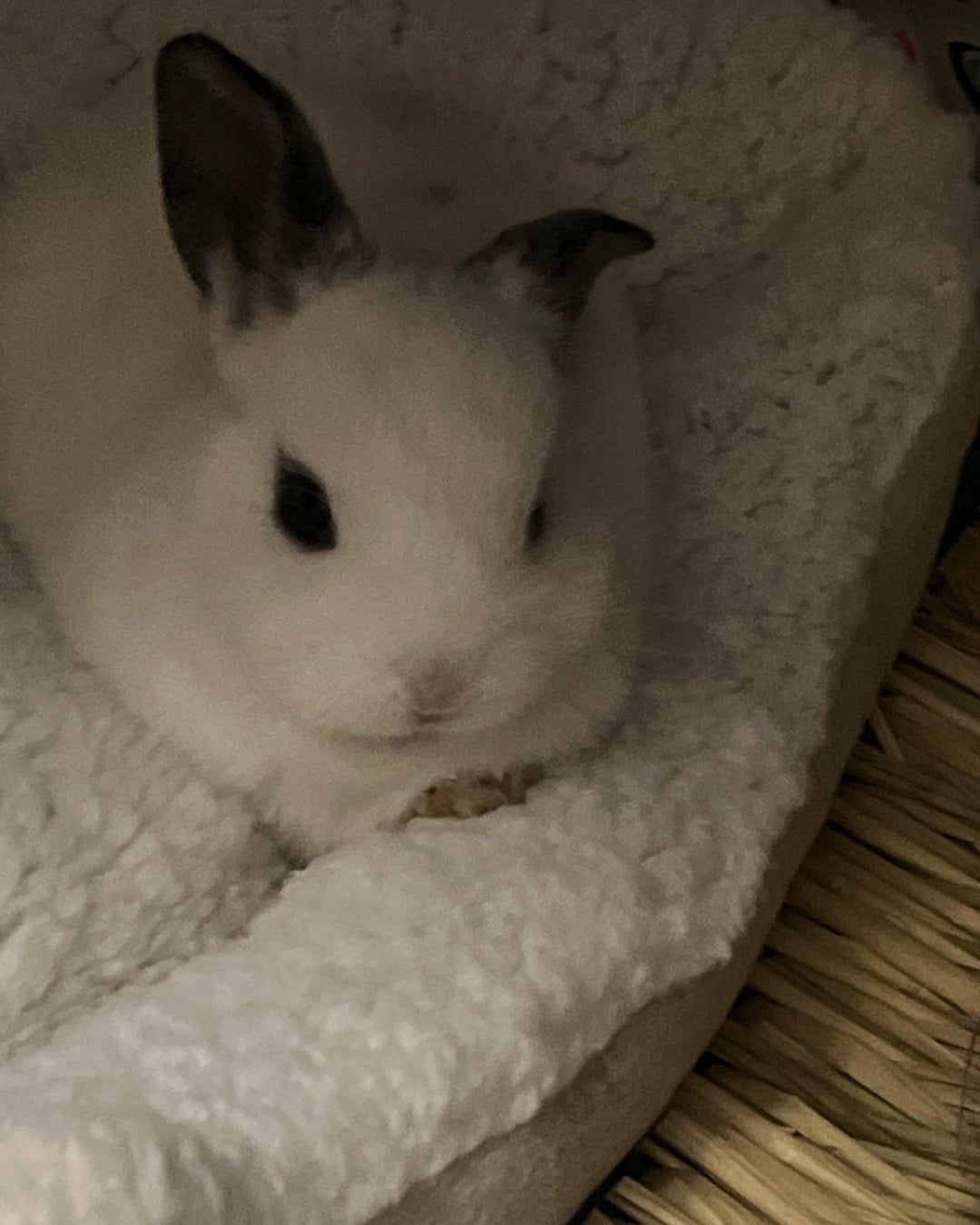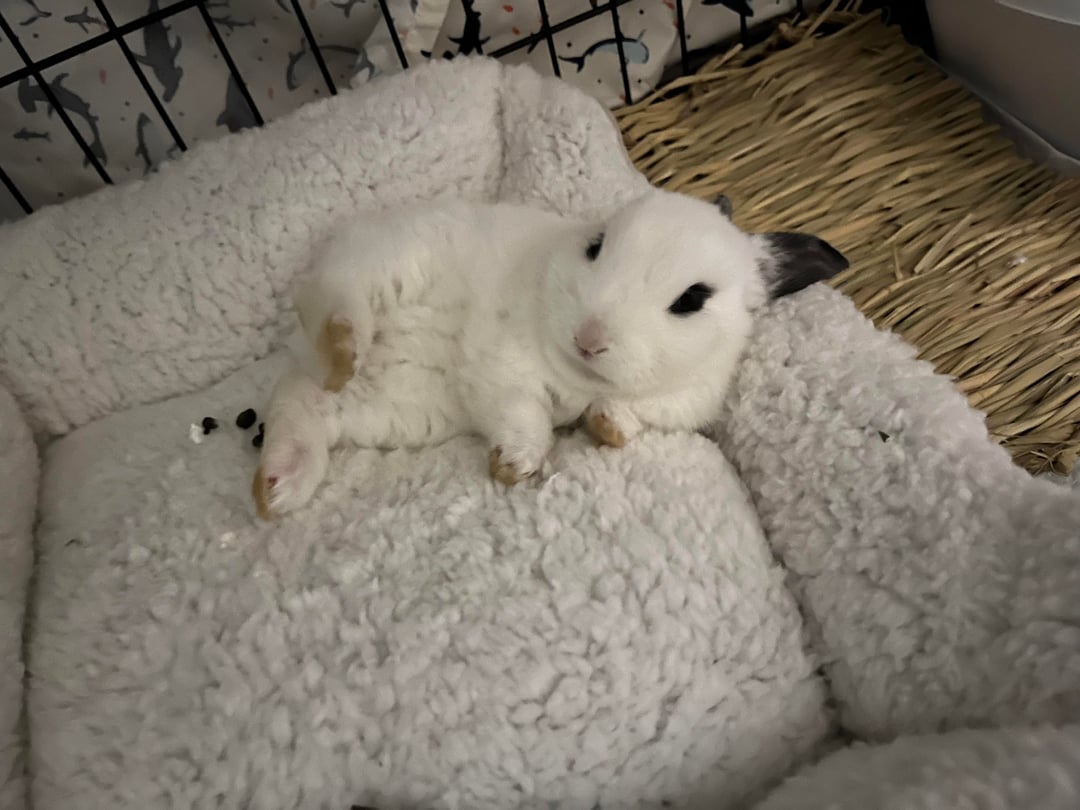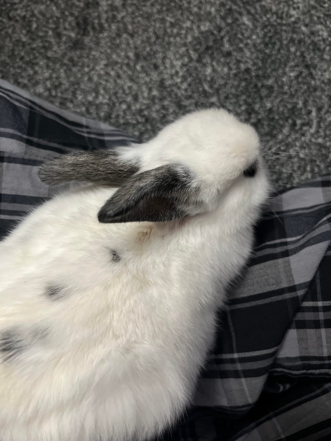 the vet believes he is a blanc de hotot mix and that seems correct.