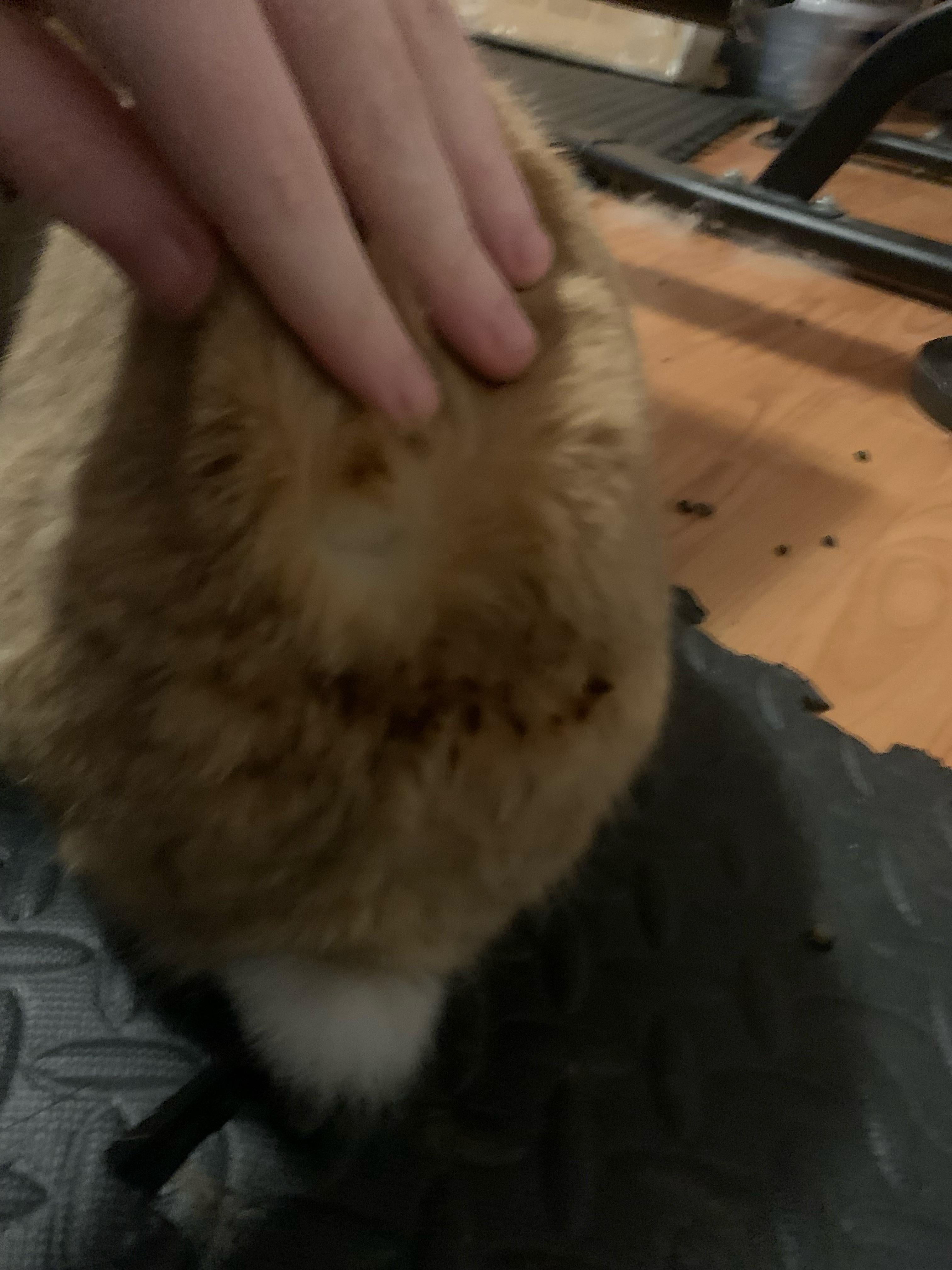 One sniff of him and I now know the smell is him searing his damn fur and why those spots are on him. I was stressed not knowing if it was like a skin infection or something worse, nope my little Stevie just wanted a warm butt apparently.