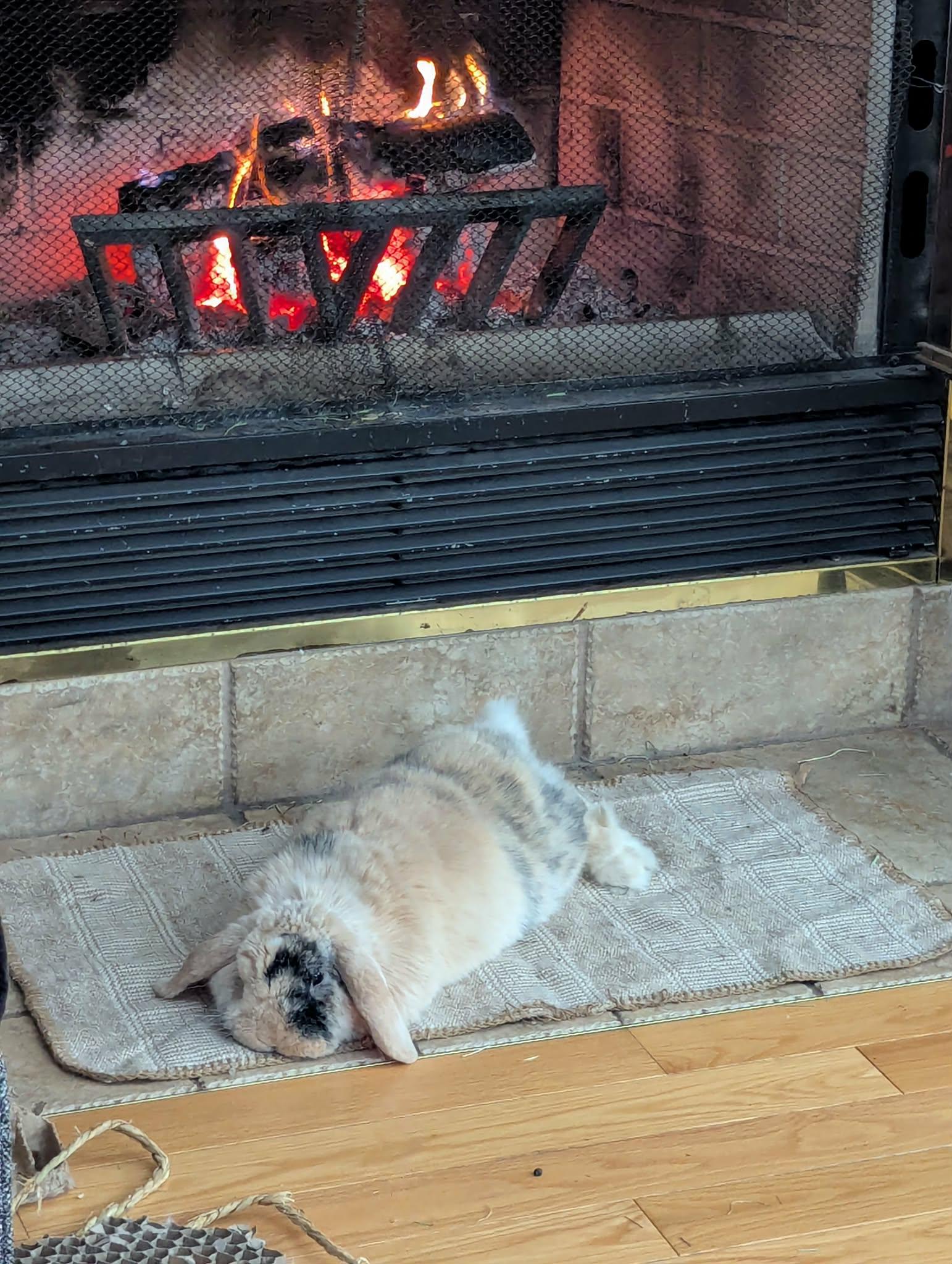 Waffle taking a much needed break in front of the fire after yesterday’s festivities