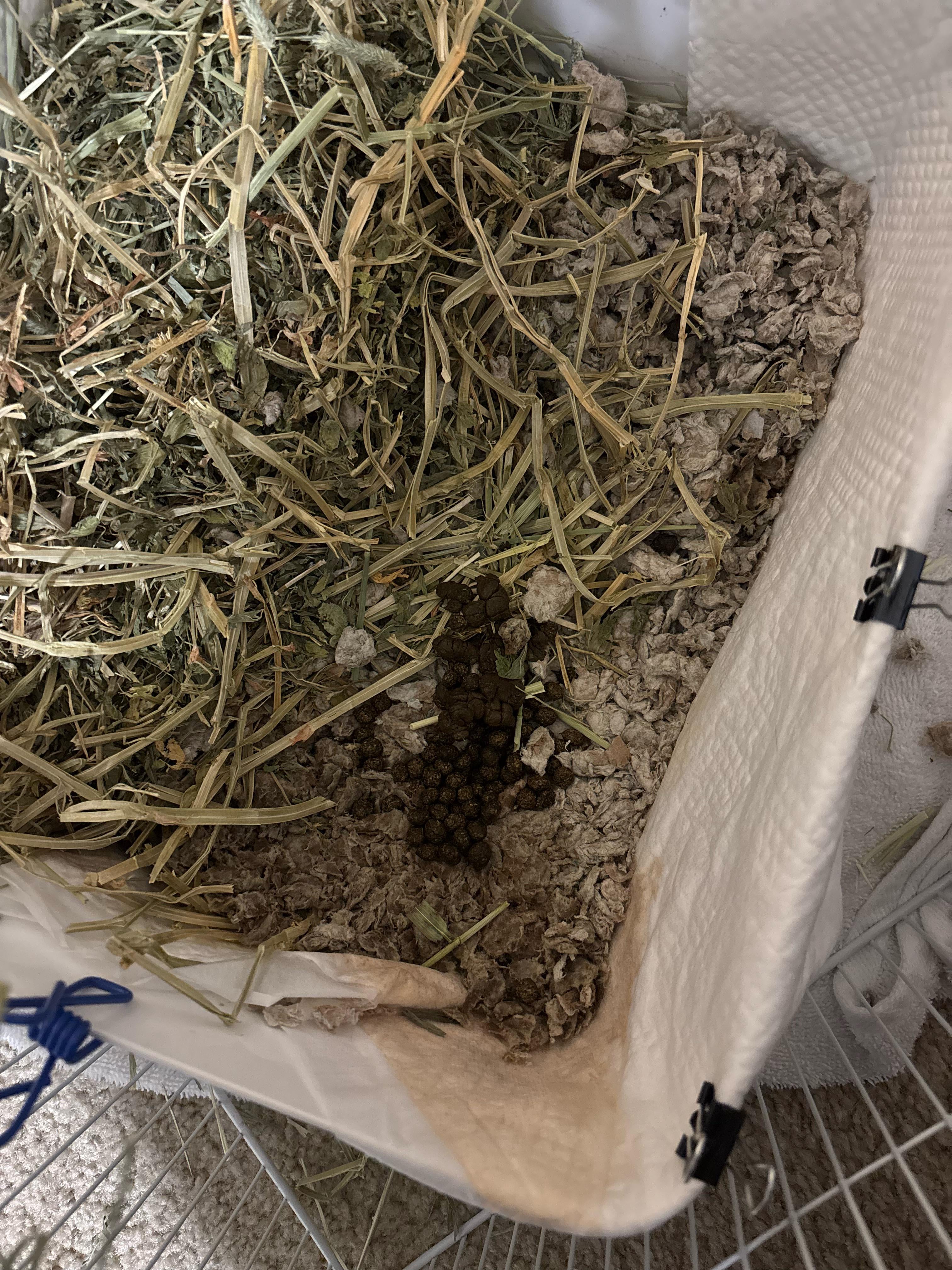 He just started pooping like this and I've had him for a week now. He's 2 months old at most and I feed him greens and pellets and unlimited hay. I recently changed his pellets because I was accidentally giving him adult pellets but he ate them just fine. He barely eats his hay unless he's using the bathroom so I decided to cut back on greens. But now all he eats is greens and sometimes his pellets. When he was pooping just now he was nibbling on his hay. Do I cave and just give him his greens? He's still hopping and running around as normal so he isn't lethargic. Should I go to a vet, is this an emergency? This is my first ever pet so I'm worried whenever he does anything outside of the norm.