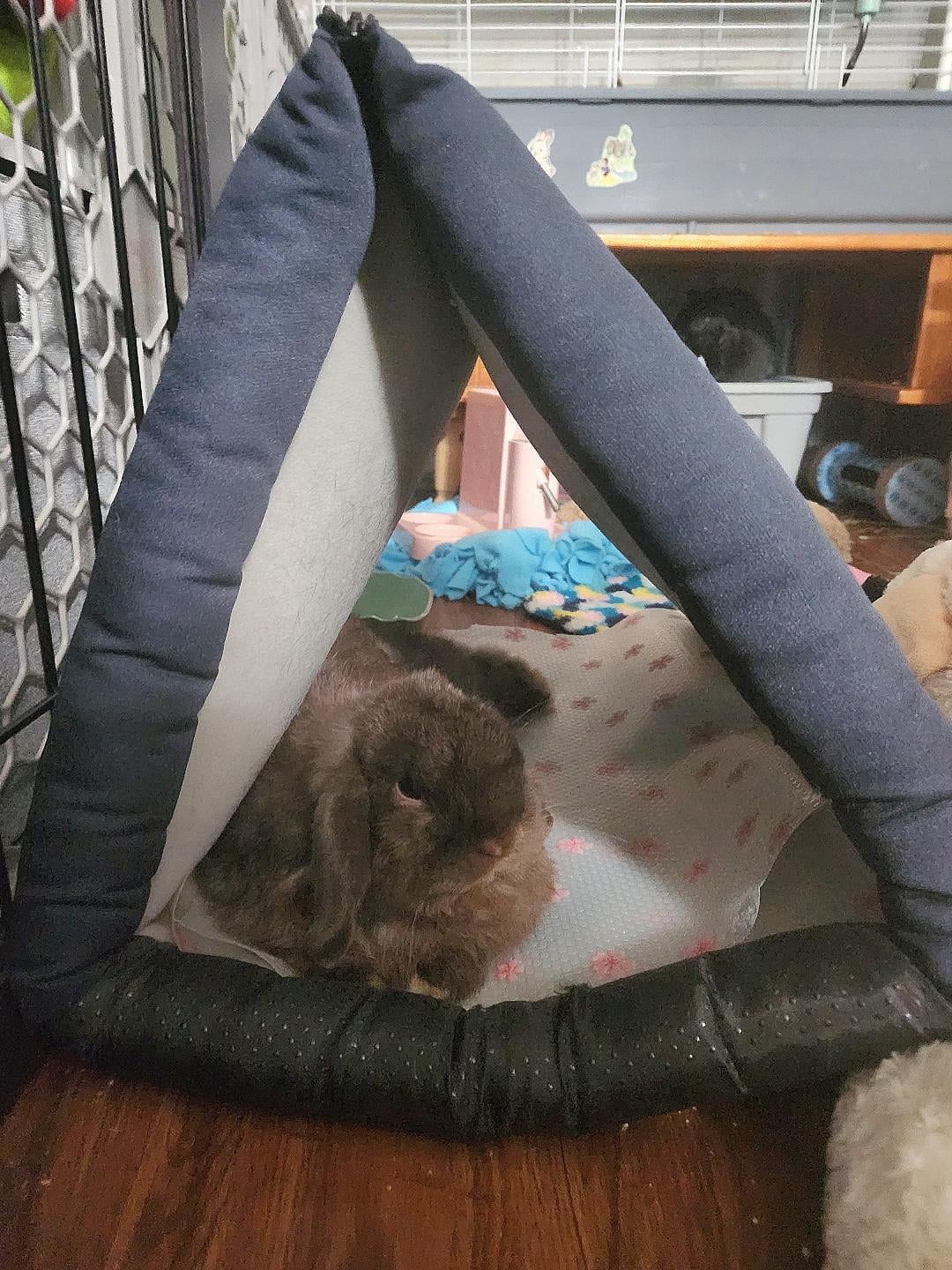 He loves this bed/tunnel. He likes the open-ended style. Finally a bed he uses by SignificantFreedom8 rabbitsWrite A CommentYou must be logged in to post a comment.