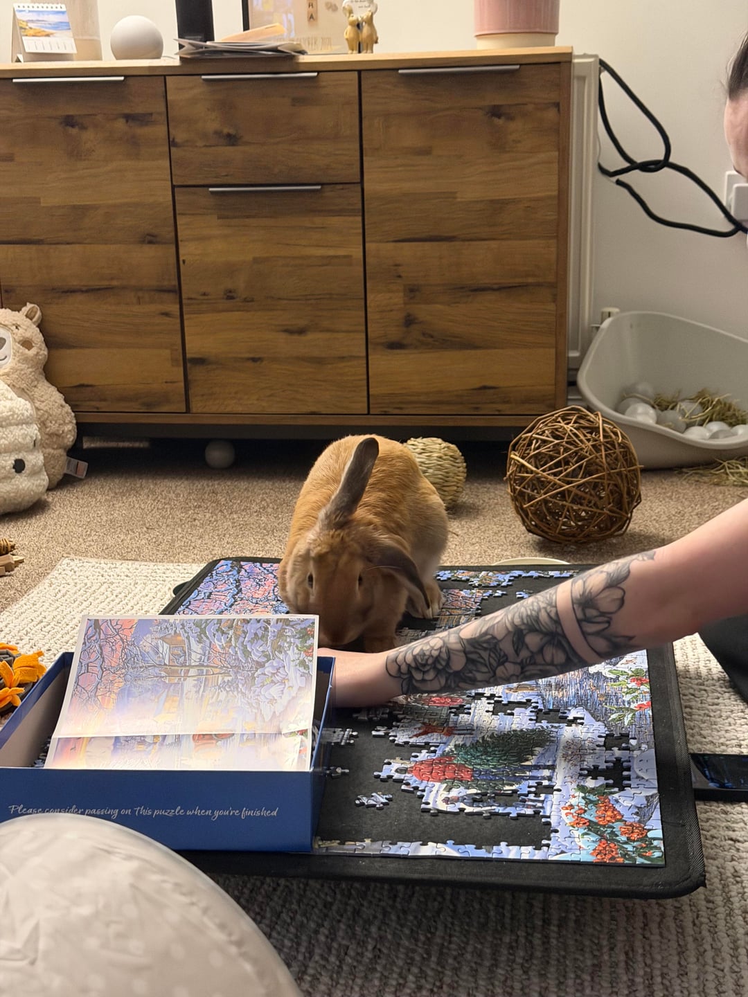 autumnsviolins 4 weeks ago Brave of you to let him so close. My rabbit has eaten jigsaw puzzle pieces in the past and to date i still cant finish the puzzle