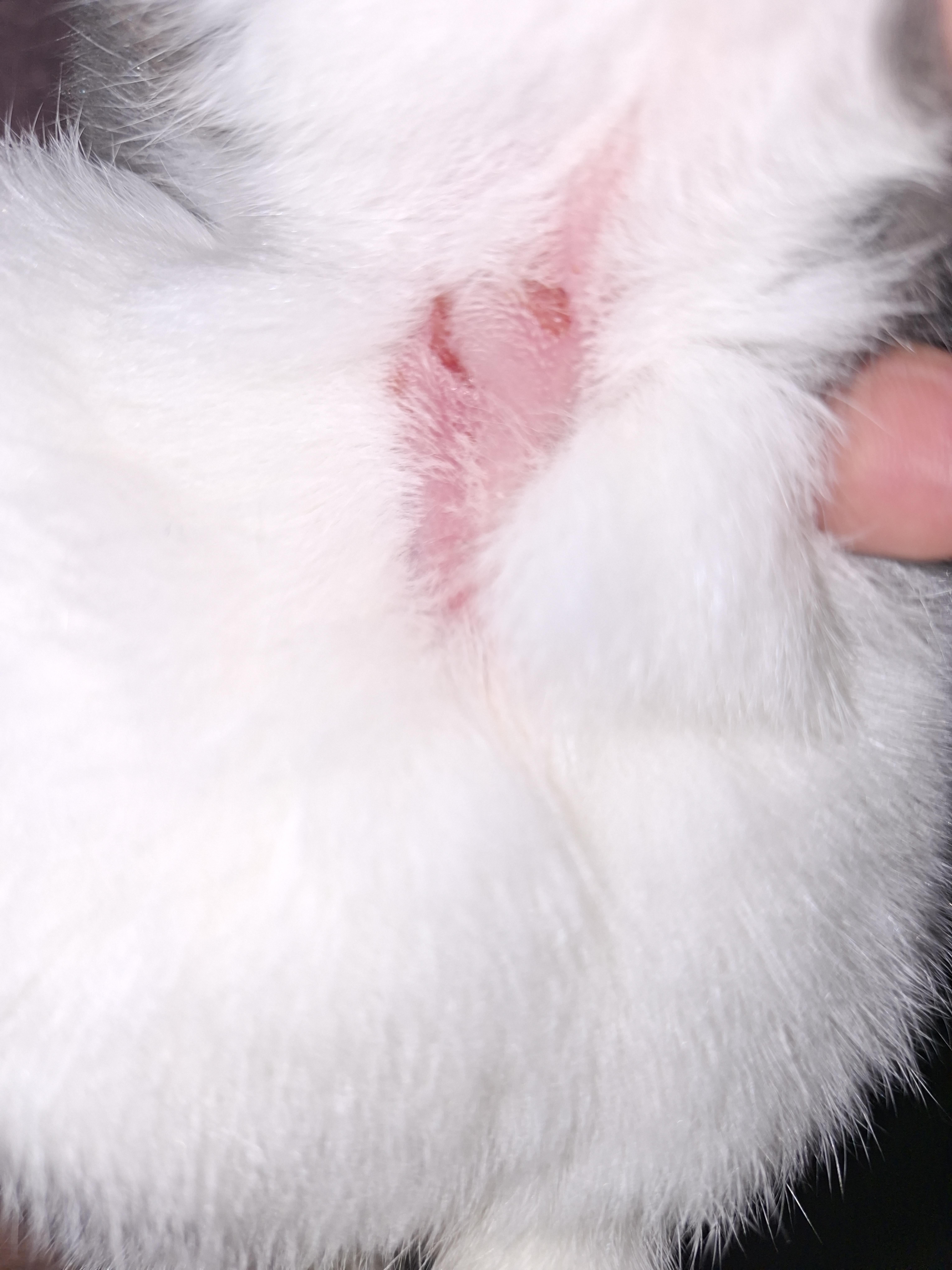 After one or two months, we felt optimistic because her fur was finally starting to grow back. However, over the past week she has started licking herself excessively again and is now close to developing an open wound.