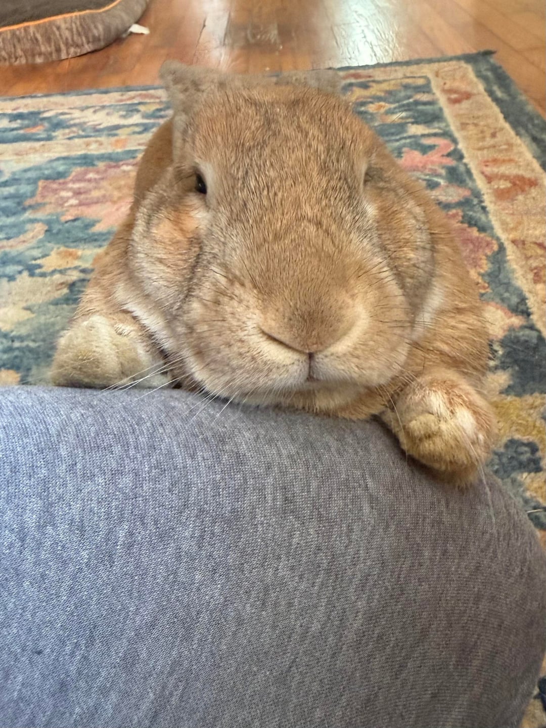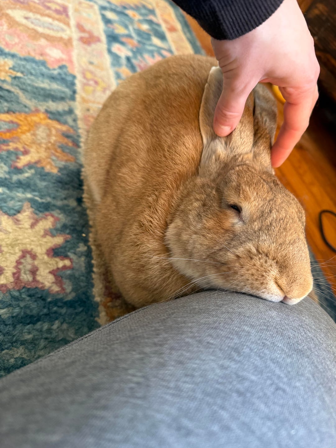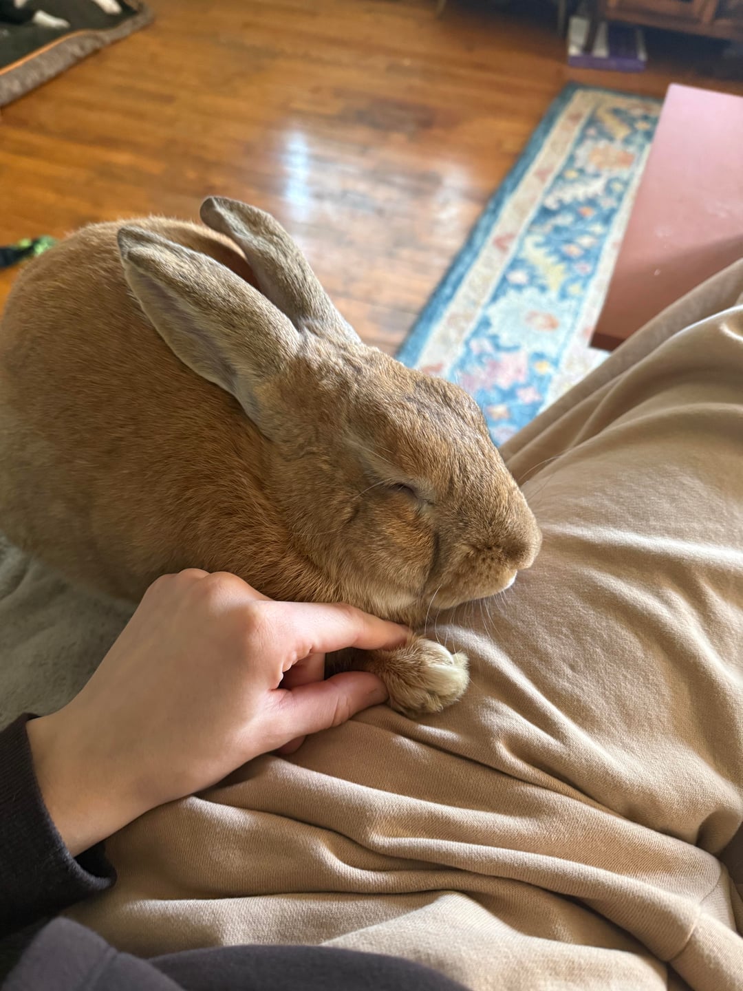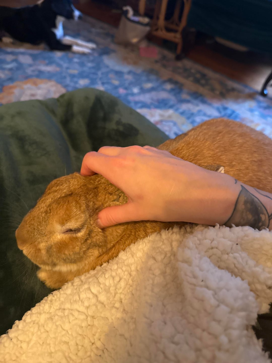 This is my very first ever bunny. I rescued him from being dumped outside about six weeks ago and scrambled to learn everything about rabbit care. He’s free roaming and warmed up to me about a week after getting him. His name is Snail.