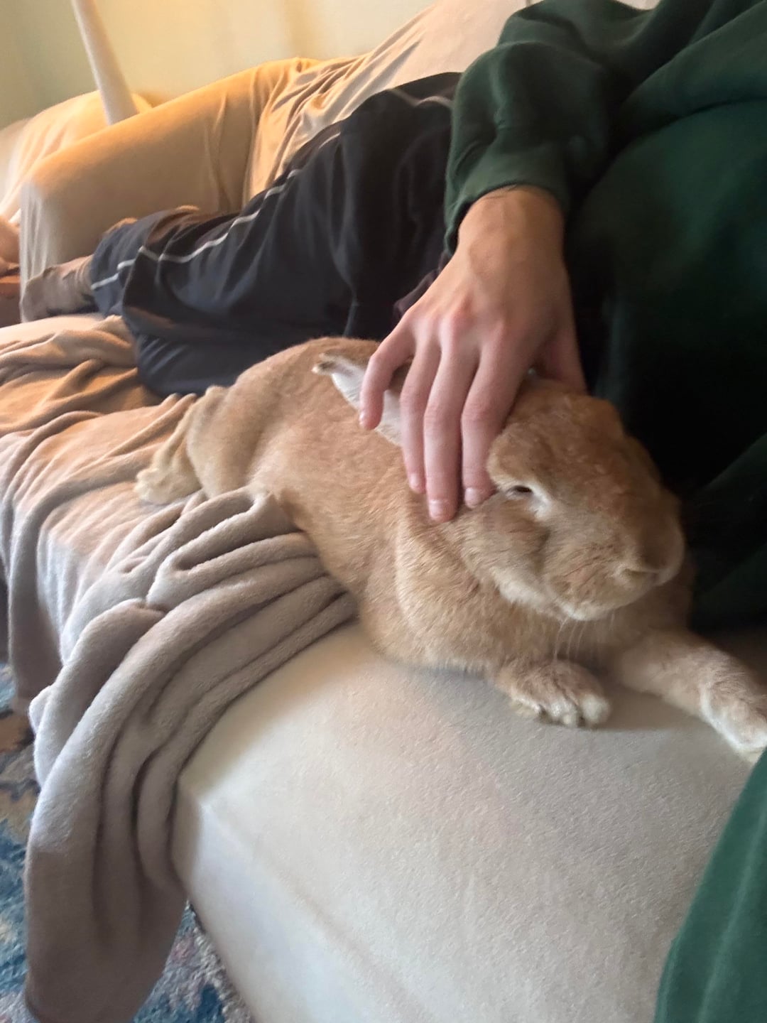 Now he follows me around the house all day. He wants petted 24/7, loves to lounge on the couch for snuggle time, and ADORES when I have guests over so he can be petted. Is this unusual for a rabbit or did I just have a false judgement about bunnies? I always thought bunnies didn’t care much for attention and were shy. I got lucky I guess!