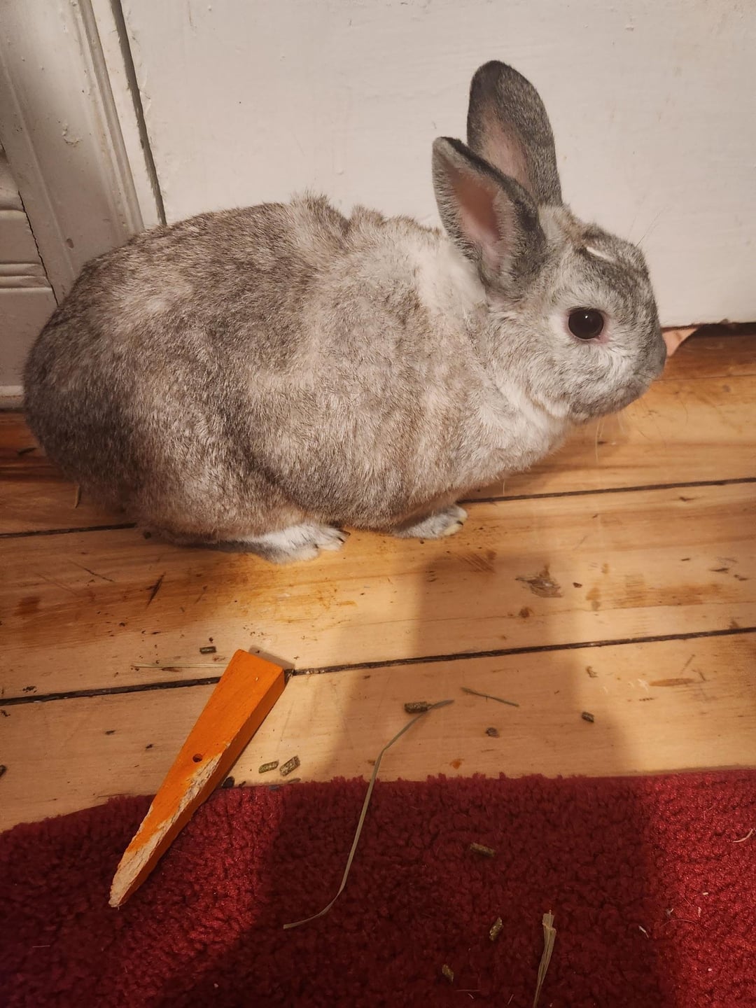 We adopted him from the humane society about ten months ago. He’s rather large, about the length of my torso, (I’m a 5’2 female). Name is Stormi! Thanks! 🙂by Toasty_Flamingo_ rabbitsWrite A CommentYou must be logged in to post a comment.