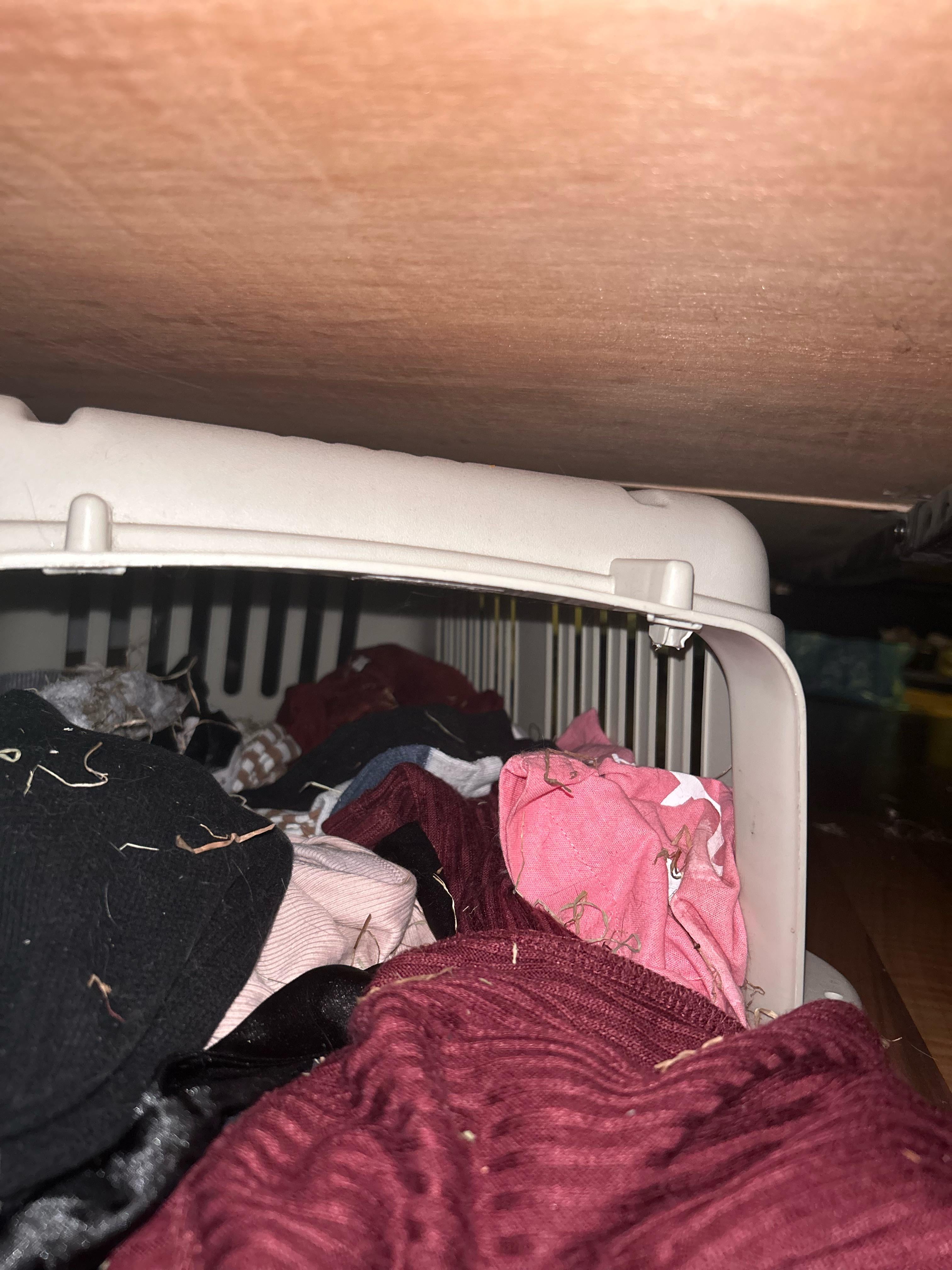 Hi! Just for some background, I have two male buns both neutered and bonded. They are free roam in my studio and have cosy places to hide away if they choose to + hay feeder and litter tray spot. My younger one (Toto) is around 4 and has started going around my room to take my socks and any other clothes on the floor and sort of tug at them before running off with them. At first I didn’t know what he was doing and just thought it was normal adorable bunny antics, but then i realised he has taken them to a hidey place under the bed and built a sort of nest? Watching him more closely, he takes them into this little carrier and digs at them to sort of organise, then hops out to get more. Then after a bit he flops and has a rest, and gets back to it. I read they might do this due to stress/ boredom, but he seems contented and has plenty of access to tunnels and chews and i play with them a lot throughout the day. He is also eating, drinking and pooping normally, so just wondering if anyone else has had this experience and if it has ever been a bad sign? I am also reluctant to mess with it and tidy it up, especially if he’s enjoying himself.