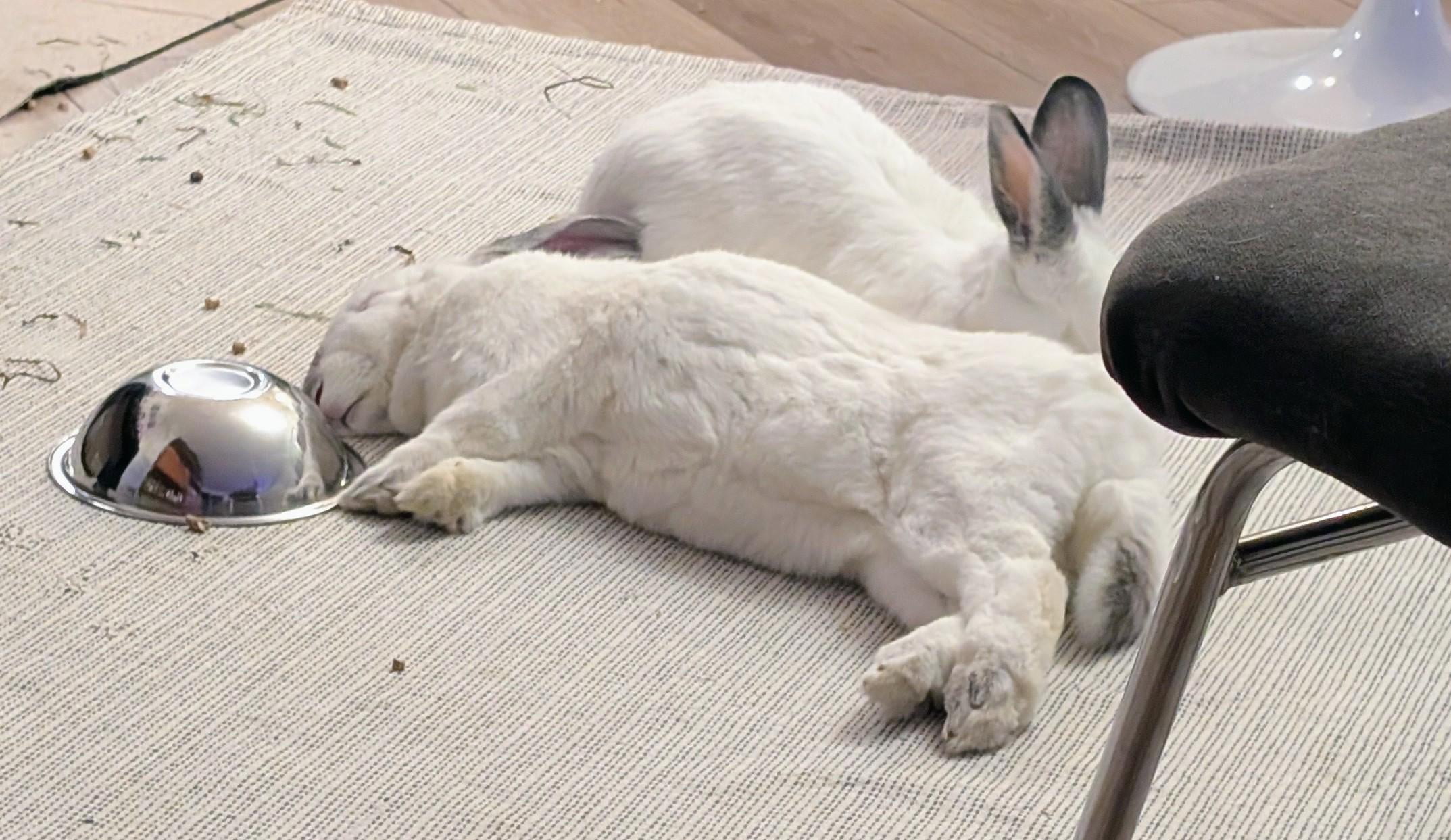 Strawberry ate dinner, flipped the bowl then flopped.