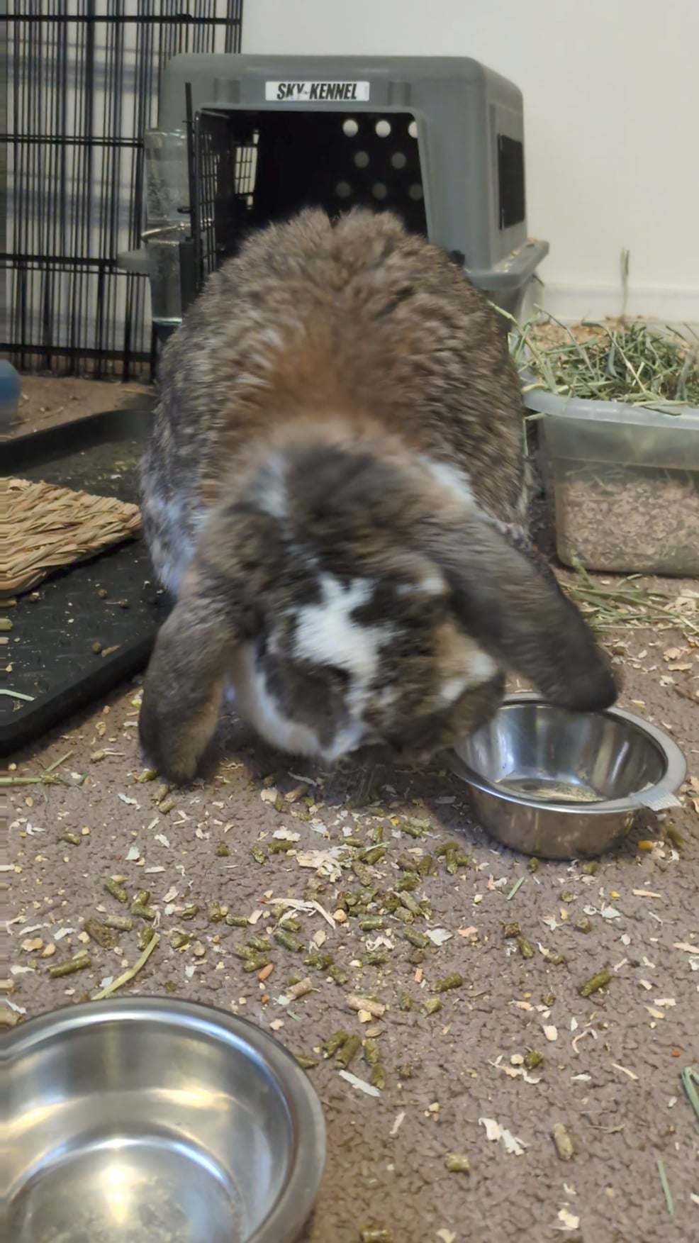 Hi! I noticed his face is drooping. One of my friendโs bunny had this happen and it turned out to be an infection have you gotten your bun checked?