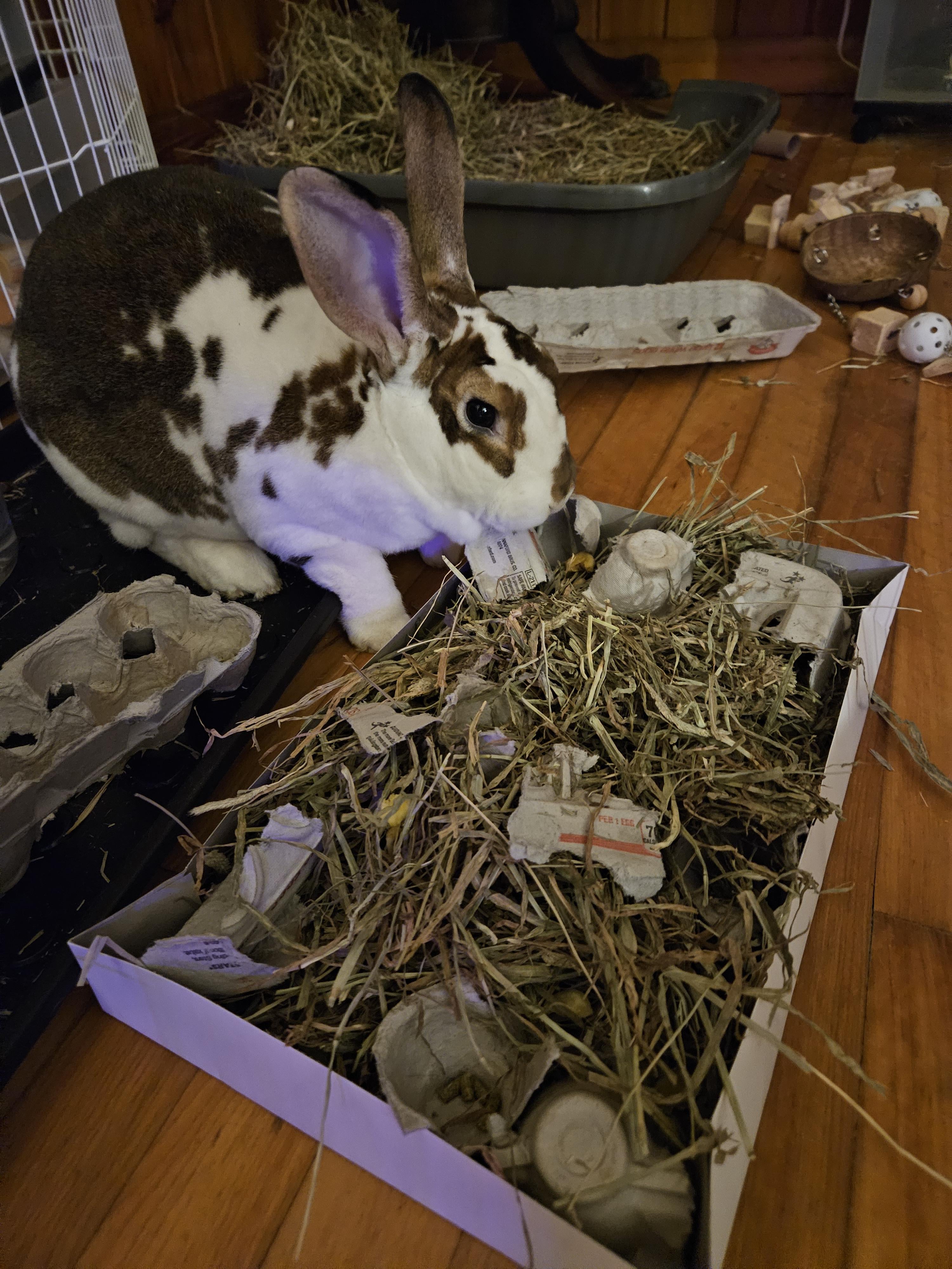 we made a budget friendly forage box out of a christmas gift box and egg carton pieces.by _tate_ rabbitsWrite A CommentYou must be logged in to post a comment.