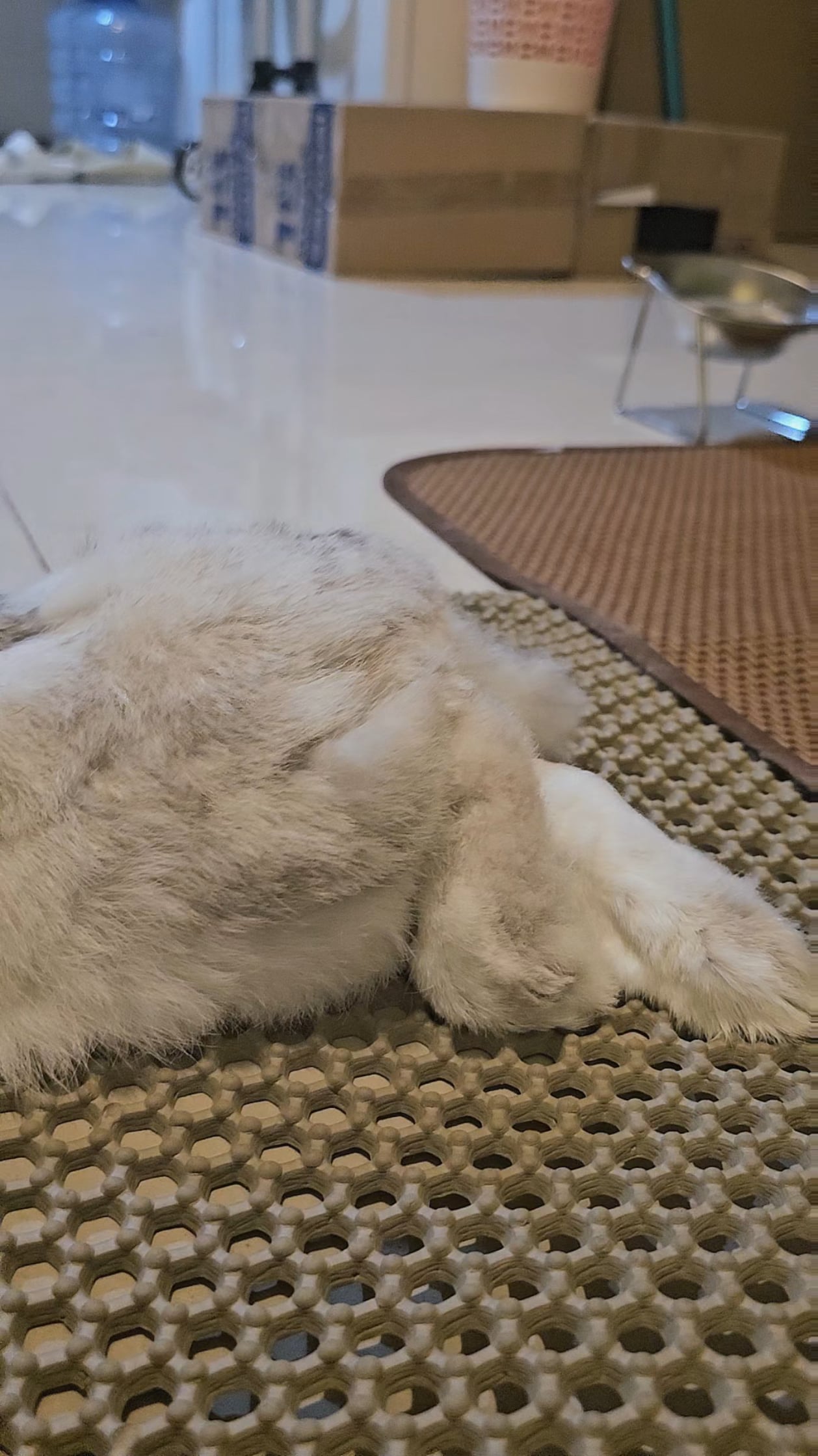 A rabbit at rest. His floppy ears have risen into an Alpine formation—soft, majestic, and entirely unearned.