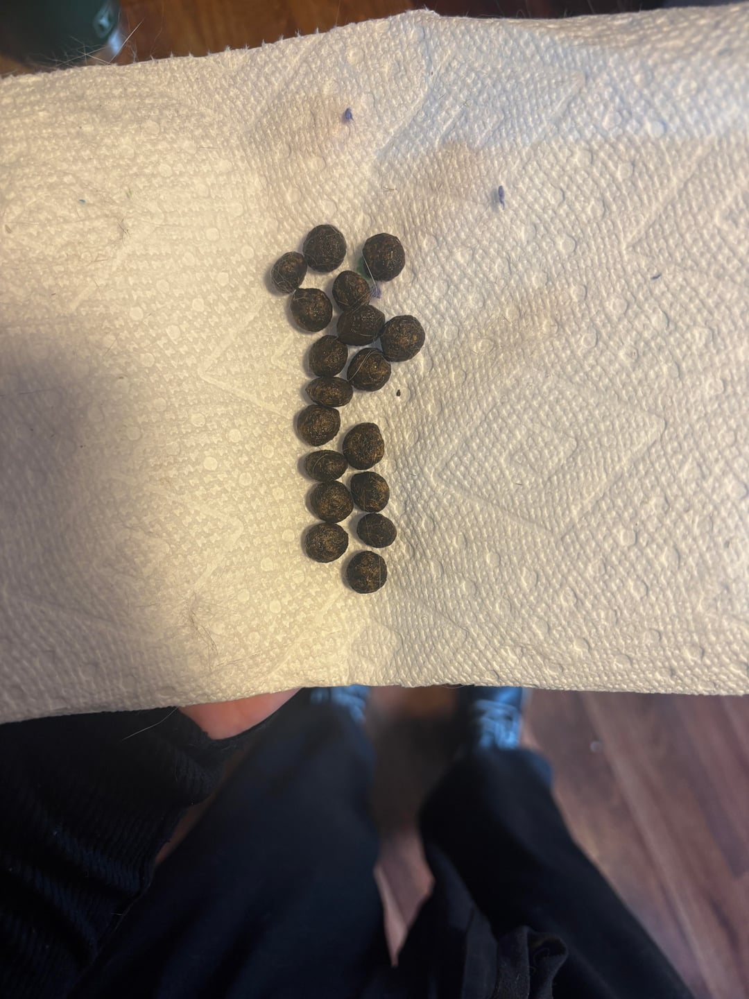 My bunny is a big girl and her poops are usually pretty big. She loves to eat and is obsessed with her pellets. This morning she wasn’t so inclined to eat which was unusual. I found clumps of really small, slimy like poops and called the vet. I made an appointment to take her in thinking it could be signs of GI stasis. I took away her pellets and left hay, she ate a bunch of hay and now her poops are back to normal. Pics for reference – side by side is old vs this mornings poop, on the paper towel is fresh poop after the small ones earlier. Should I still take her to the vet? Cost is of course a factor, having to spend $1000 on my cat just yesterday 😅 ugh. Any advice is appreciated!!