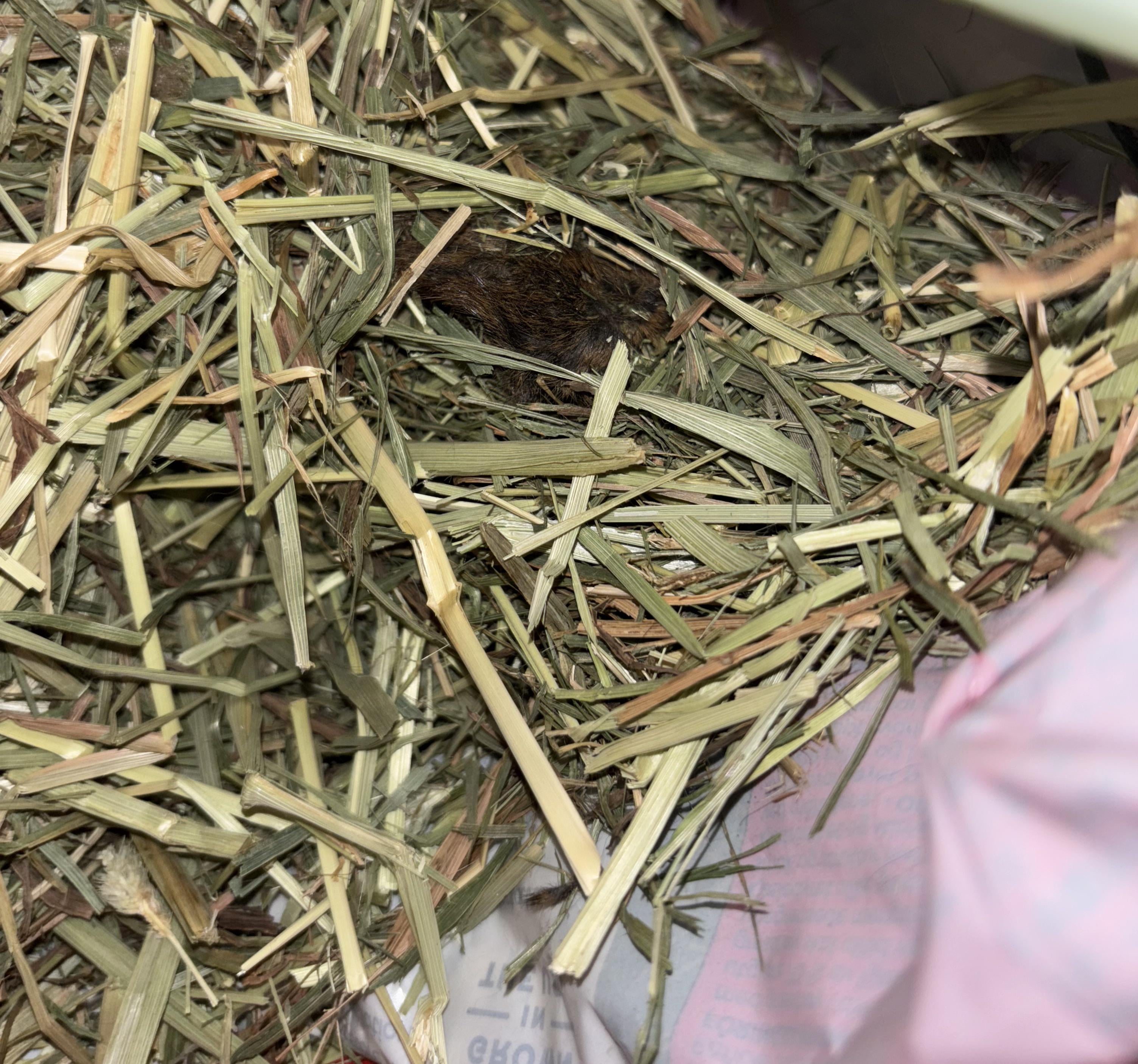 My rabbit was eating his hay when I suddenly smelt this weird smell coming from it. I looked inside of the bag and I noticed this mouse-like creature in it. I cross-google searched and did some digging, and found out it’s actually a vole! It was at the bottom of his hay bag. I’m really concerned about my rabbits health now, and I don’t know if him eating vole-infected hay will harm him. Please let me know how to go about helping him 🙂