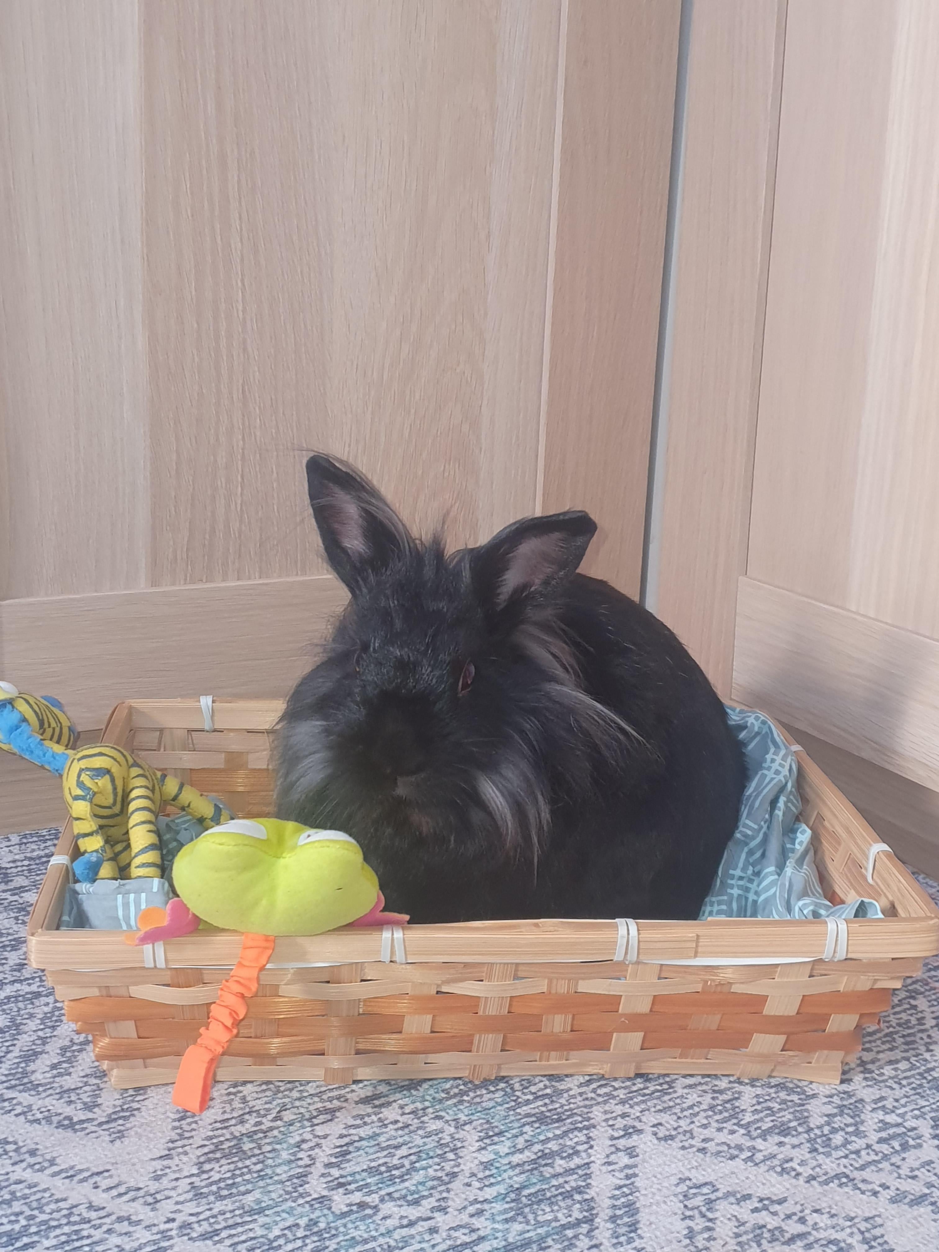 Snowball in his toy box 🐰❤️