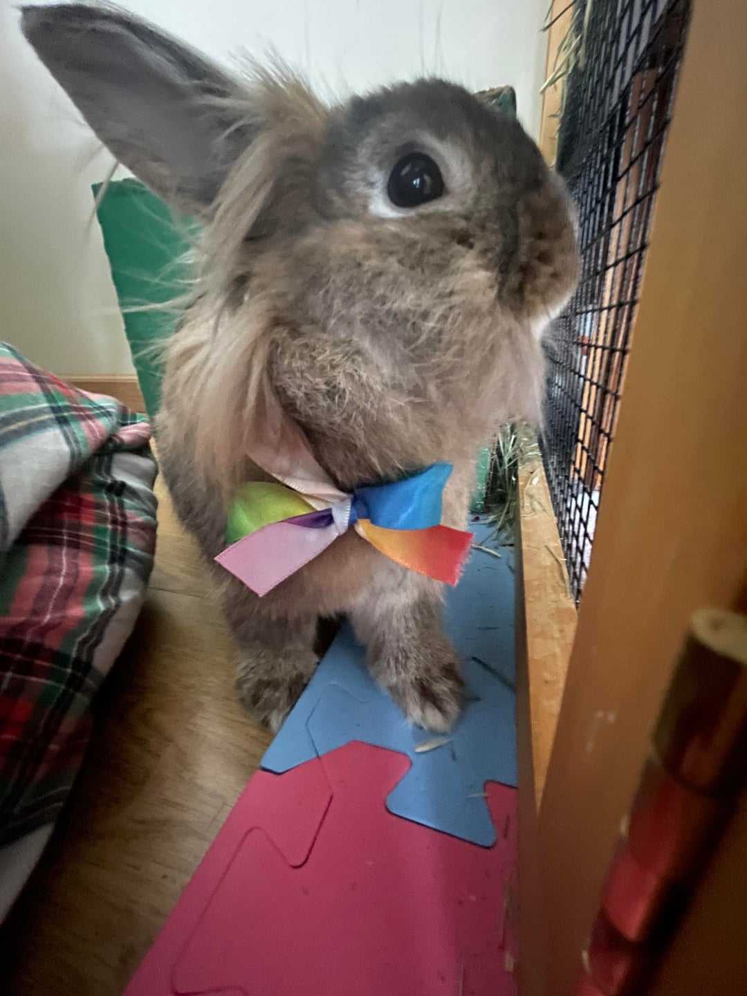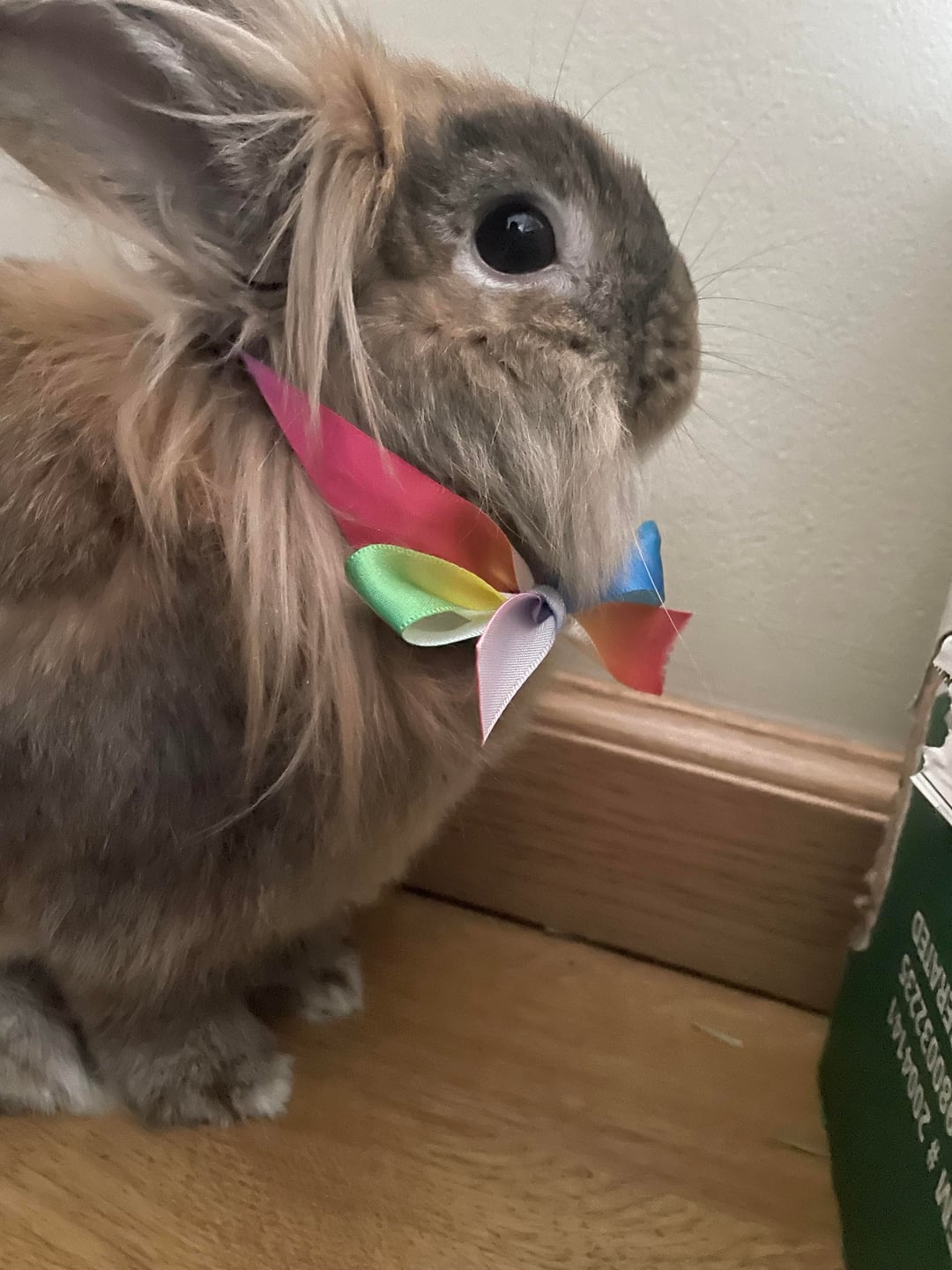 Hi everyone I have this sweet 2 year old lion lop named tina here that we took in from a friend a few months ago from a family friend. This is our first winter with him and his fur is getting really staticy. We have an forced air house and he came from a radient house so who he came from had no tips for dealing with static. We've tried everything from lightly misting his hair to keeping an humidifier in his room. If anyone whos delt with this before could give us any tips that would be much appreciated! Thank you!