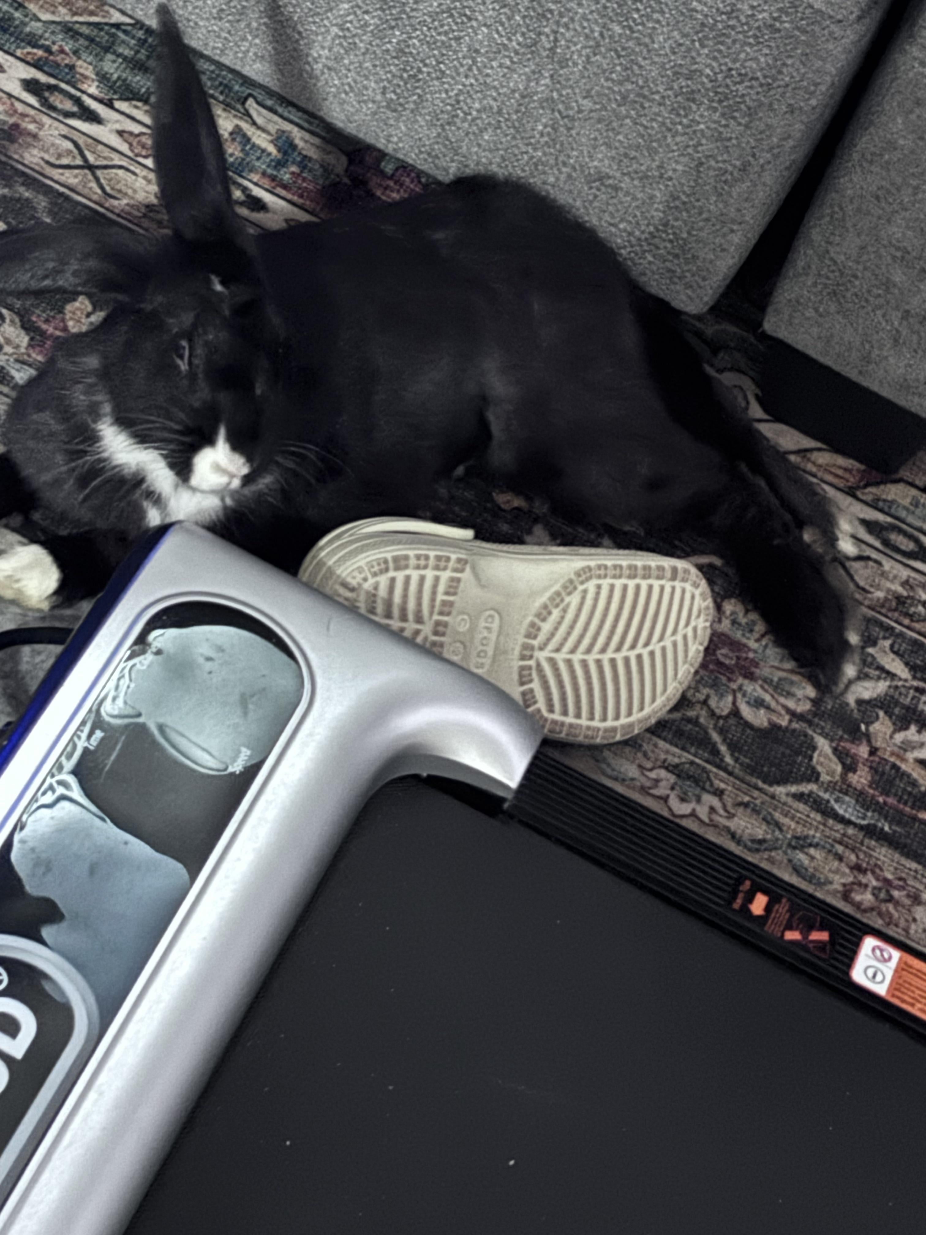 Just wanted to share I adopted a shelter bunny almost 2 weeks ago. She is still very shy and timid but I can definitely tell she is warming up to me and it melts my heart! Today I seen her "flop" over and at first I was a little scared because I thought something had happened but I'm guessing this means I have a very happy bunny ?