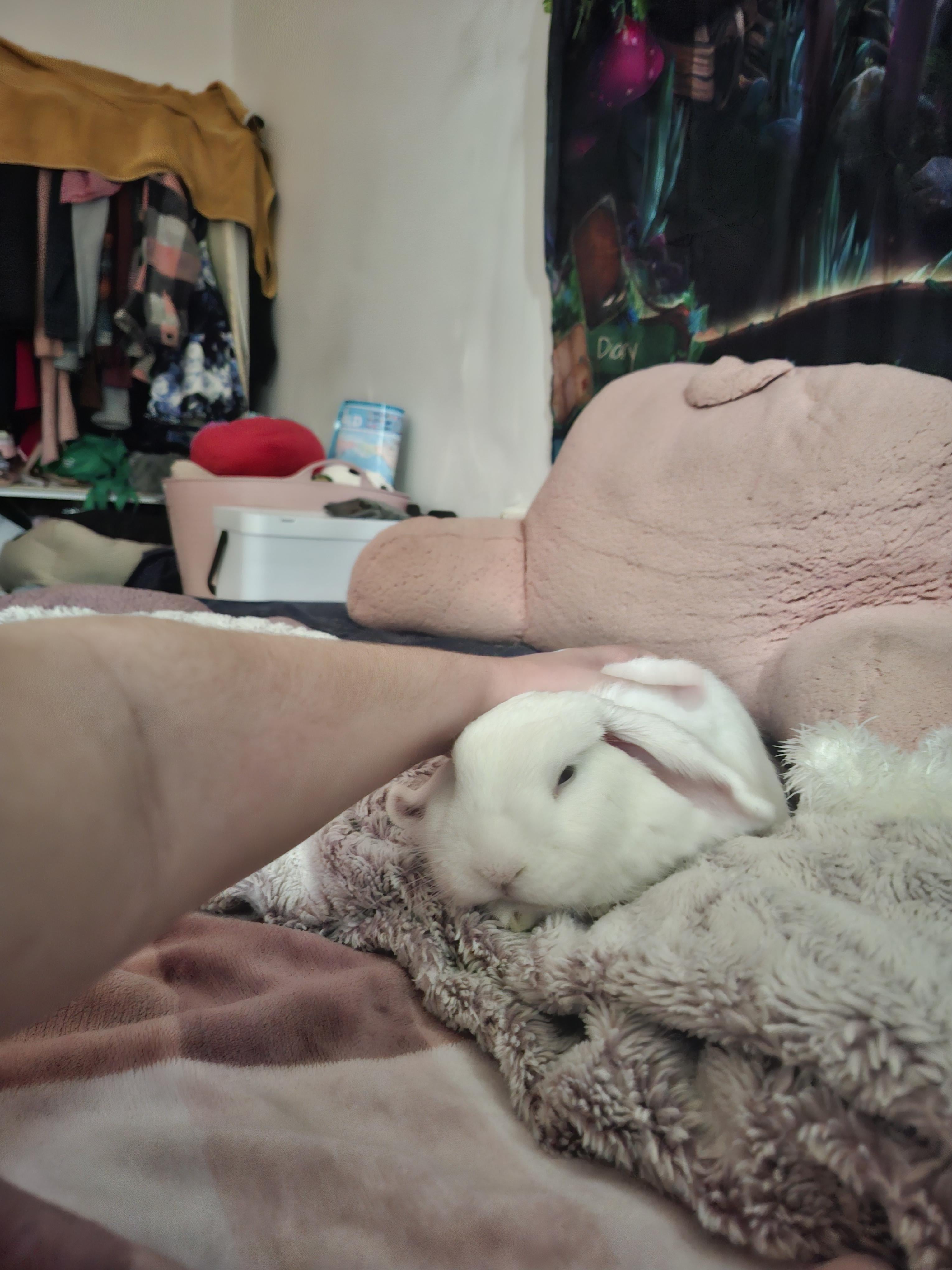 single bunny, as the title says. how do i differentiate? the other indicators i can find online of loneliness and depression are withdrawal, inactivity, lack of appetite, abnormal litter habits, and destructiveness. these are all fine—he binkies, flops, zooms daily, plays with toys, explores, regularly approaches me for pats and snuggles, climbs all over me with kisses in the morning. when i had an ensuite he would follow me in and either pee with me, or sit guard at the door. i guess i'm worried, is he getting lonely and seeking more attention lately as a result, or are we growing closer after a year together? are there any other signs i can look for?