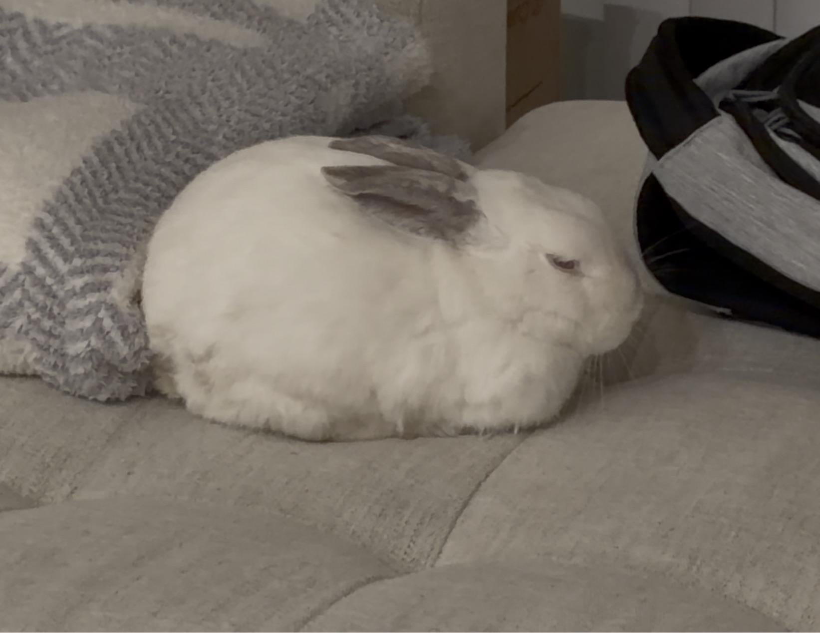My brother recently took in a rabbit that someone he knew had found a few weeks ago and we are unsure about gender, age, etc and we aren’t extremely well versed in rabbit behavior. Can anyone identify what breed she is? (the person who rescued her told us it’s a she but we have no real confirmation of that). She has been provided with a large pen and constant access to Timothy hay, water, and a few toys. She’s been allowed to free roam when supervised and seems docile, curious and friendly. She sniffs around the house, occasionally standing on her hind legs, hops up onto the couch, and comes over to sniff us (all of which I assume is normal rabbit behavior), and has allowed us to pet her and seems content. The picture was after she was being pet for a few minutes and I assume that position means contentment. She has a vet appointment scheduled for Monday, and seems to be doing well in the meantime. Any input is appreciated.