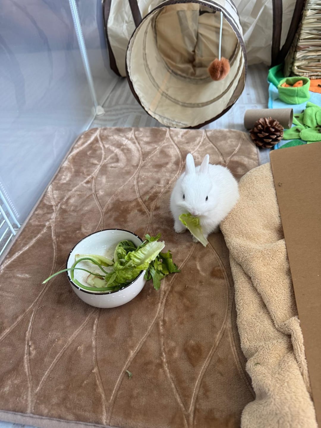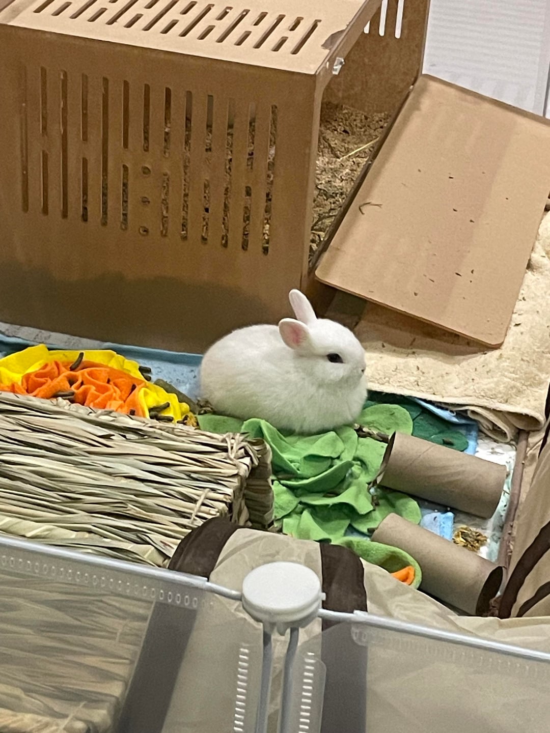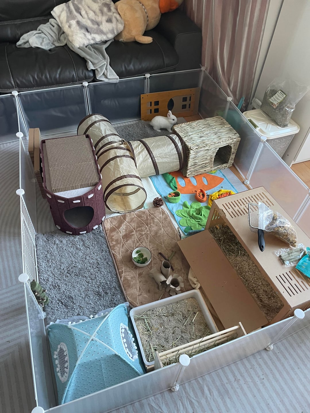 She’s wonderful 💗 and well behaved except for when it comes to going under the sofa 🤭. Do you have any thoughts on what type of rabbit she is? I thought she was a dwarf as a baby but now she’s two months and her ears have grown. Also any tips or recommendations to improve her space are appreciated ( I let her out when I’m home).